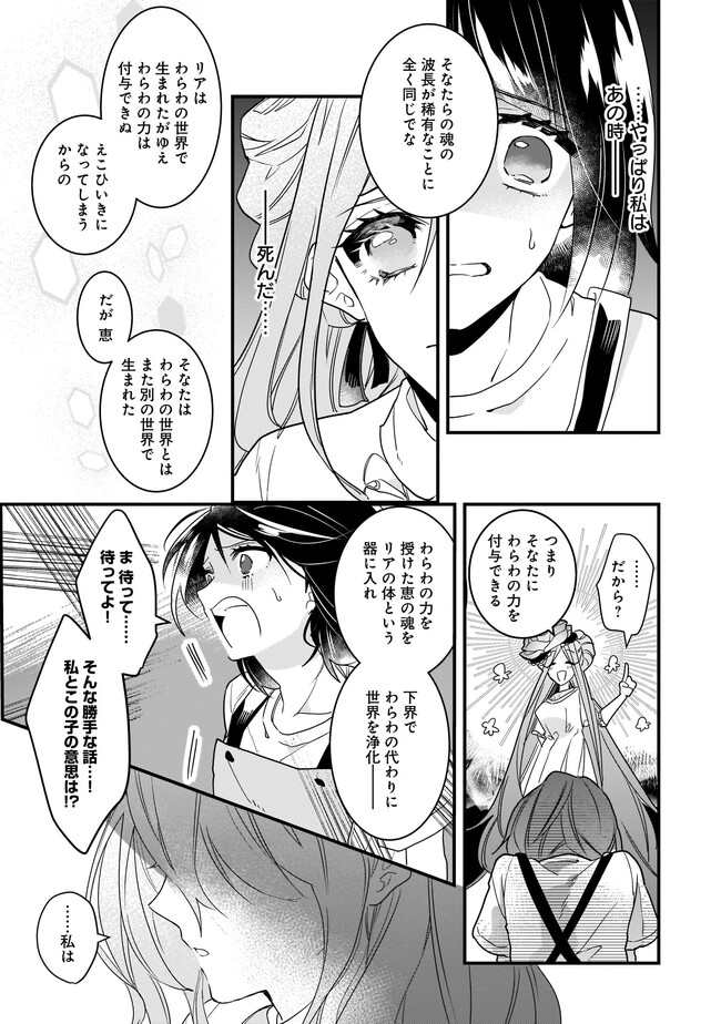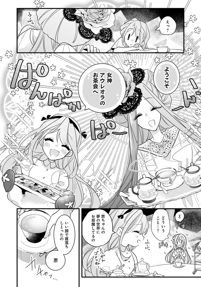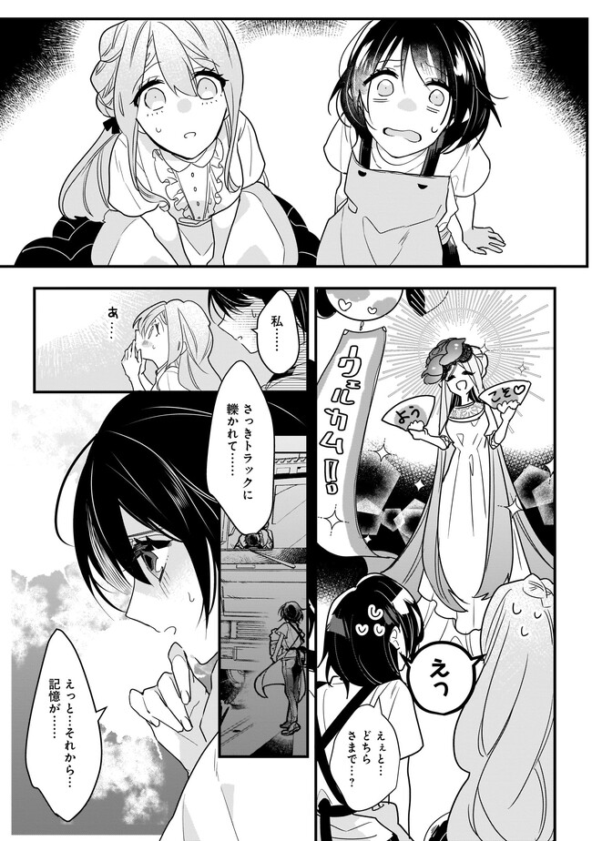 高校生のめぐみさんは、花屋さんを手伝いながらトラックにひかれて命を落とします。目覚めためぐみの前には異世界の女神光輪が立ち、横には別の少女スリアが立っていた。