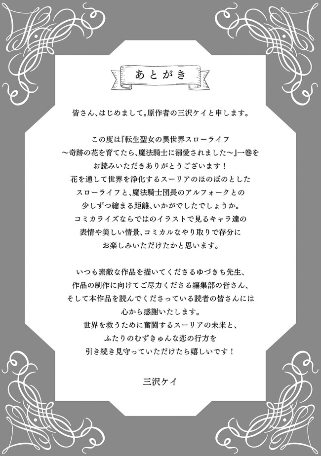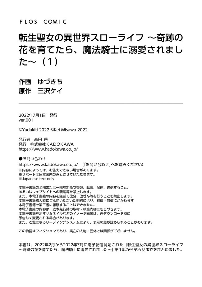 “転生聖女の異世界スローライフ ~奇跡の花を育てたら、魔法騎士に溺愛されました~” 【1巻無料】