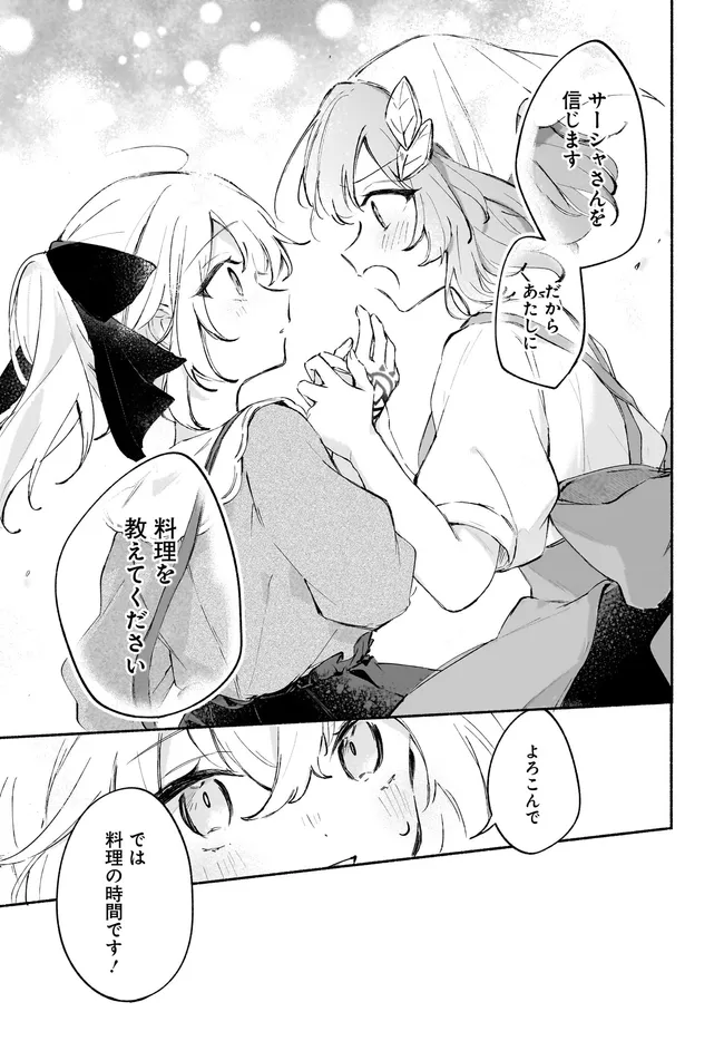 料理への探求心溢れる元日本人のサーシャは、異世界の宮廷で史上最年少の副料理長として活躍中! しかし、とある“やらかし”で厨房をクビにされてしまう…。 就職先を求めて流れ着いた先は、料理の評判も悪く、女の子ひとりで切り盛りする、今にも潰れそうな大衆食堂で…? 「元」宮廷料理人のサーシャは、潰れかけた大衆食堂を救えるのか…!? 料理好きな転生者と食堂の跡取り娘、崖っぷちだった二人が作る料理系異世界物語、待望のコミカライズ!!