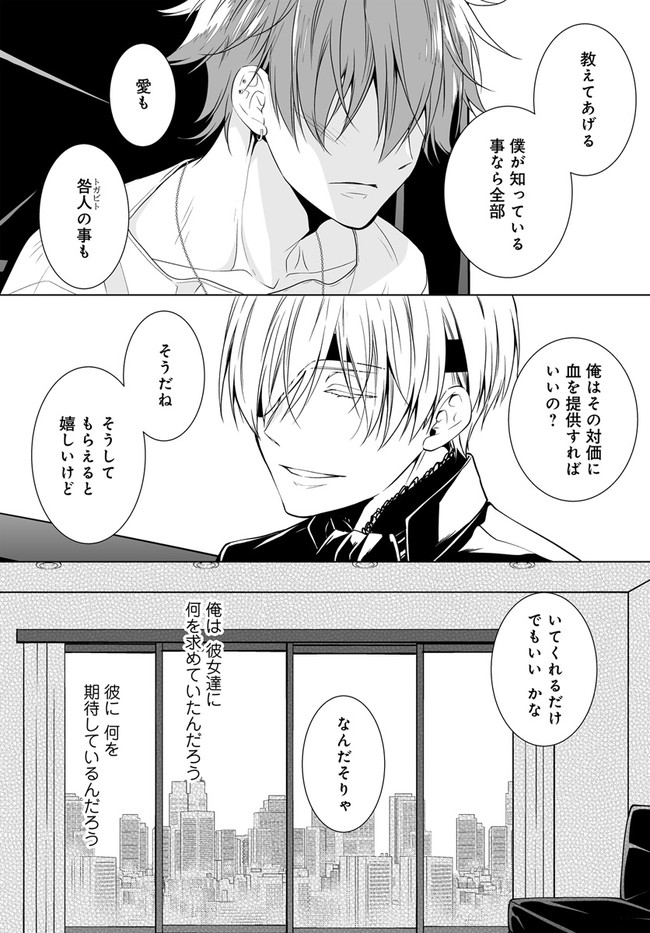咎人の刻印 第3話 咎人の刻印 投稿者 admin - 3年 前に 幸せな読書漫画 咎人の刻印 第3話 , いいねと共有ボタンをクリックすることを忘れないでください. Manga 咎人の刻印 常に更新されます 無料コミック Comic Top. 他のマンガの更新を読むことを忘れないでください。 マンガコレクションのリスト 無料コミック Comic Top マンガリストメニューにあります. お友達と共有しましょう! Facebook Twitter Pinterest Whatsapp 前のエピソード すべての章 次のエピソード リスト ページング Loading.. 前のエピソード すべての章 次のエピソード リスト ページング お友達と共有しましょう! Facebook Twitter Pinterest Whatsapp お気に入りに追加に続く 0 人 咎人の刻印 「人は、誰かに対して『愛してる』って言うだろ。でも、その愛って何処にあるんだろうと思って」 探しものを見つけることができない青年・神無の前に現れたのは、陶器人形のような美しい少年・御影。 「それが欲しいなら、おいで。愛してあげる」 これは、罪を犯して人の道を外れ、肉体に罪の証<聖痕>と呼ばれる刻印を宿した、異能者たちの物語。 大人気小説、待望のコミカライズ! 巖本英利(キャラクター原案)蒼月海里(小学館文庫キャラブン!刊『咎人の刻印』より)(原作)藤丸豆ノ介(漫画) アクションコミカライズバトルファンタジー吸血鬼女性向け異能力