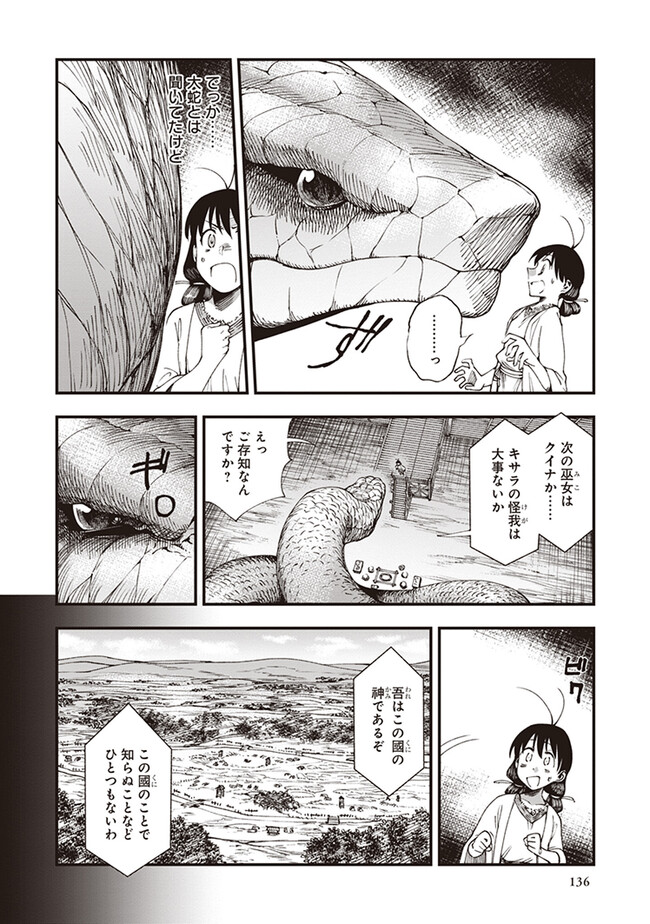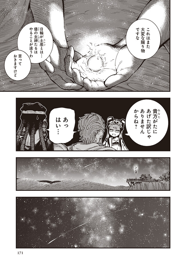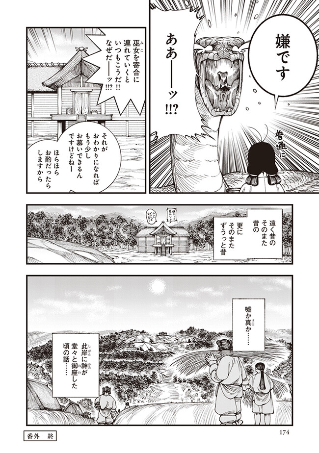 峠鬼 【番外】太陽をおみやげに 峠鬼 投稿者 admin - 3年 前に 幸せな読書漫画 峠鬼 【番外】太陽をおみやげに , いいねと共有ボタンをクリックすることを忘れないでください. Manga 峠鬼 常に更新されます 無料コミック Comic Top. 他のマンガの更新を読むことを忘れないでください。 マンガコレクションのリスト 無料コミック Comic Top マンガリストメニューにあります. お友達と共有しましょう! Facebook Twitter Pinterest Whatsapp 前のエピソード すべての章 次のエピソード リスト ページング Loading.. 前のエピソード すべての章 次のエピソード リスト ページング お友達と共有しましょう! Facebook Twitter Pinterest Whatsapp お気に入りに追加に続く 0 人 峠鬼 遥か昔の倭の国の、神代と人世のその間。神々が人間と共存していた時代。 道士・役 小角(えんの おづの)とその弟子、妙(みよ)と善(ぜん)は、 各地の神々をめぐる旅をしていた。 その目的は、あらゆる願いを叶えてくれる龍神・一言主(ひとことぬし)へまみえること。 一行は神々が持つ神器の力をお借りして、一言主が住まう山・葛城山を目指すーー! 俊英・鶴淵けんじが、古代神話にファンタジーやSFの視点を加えて描き出す、全く新しい“古代日本”! 鶴淵けんじ(著者) ファンタジー