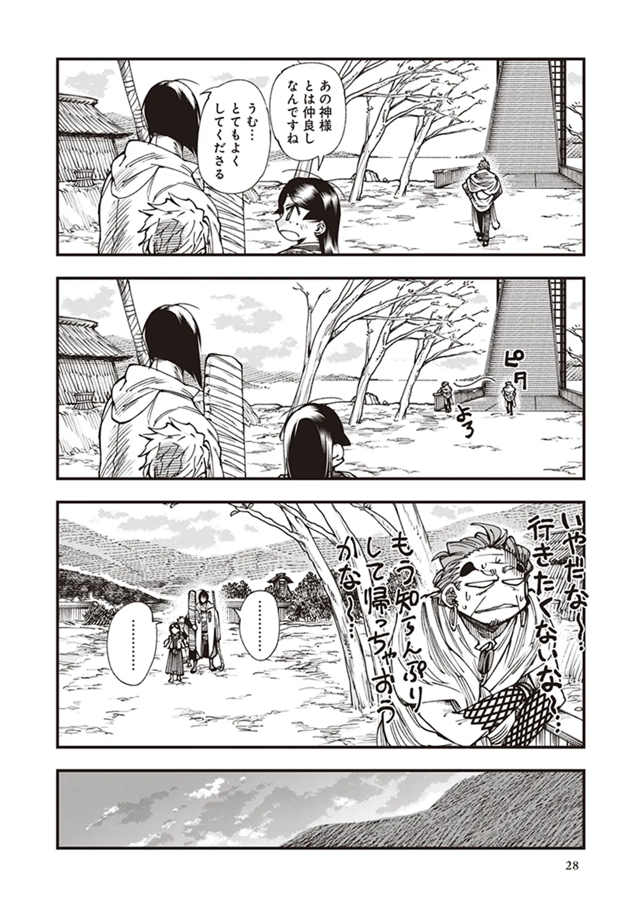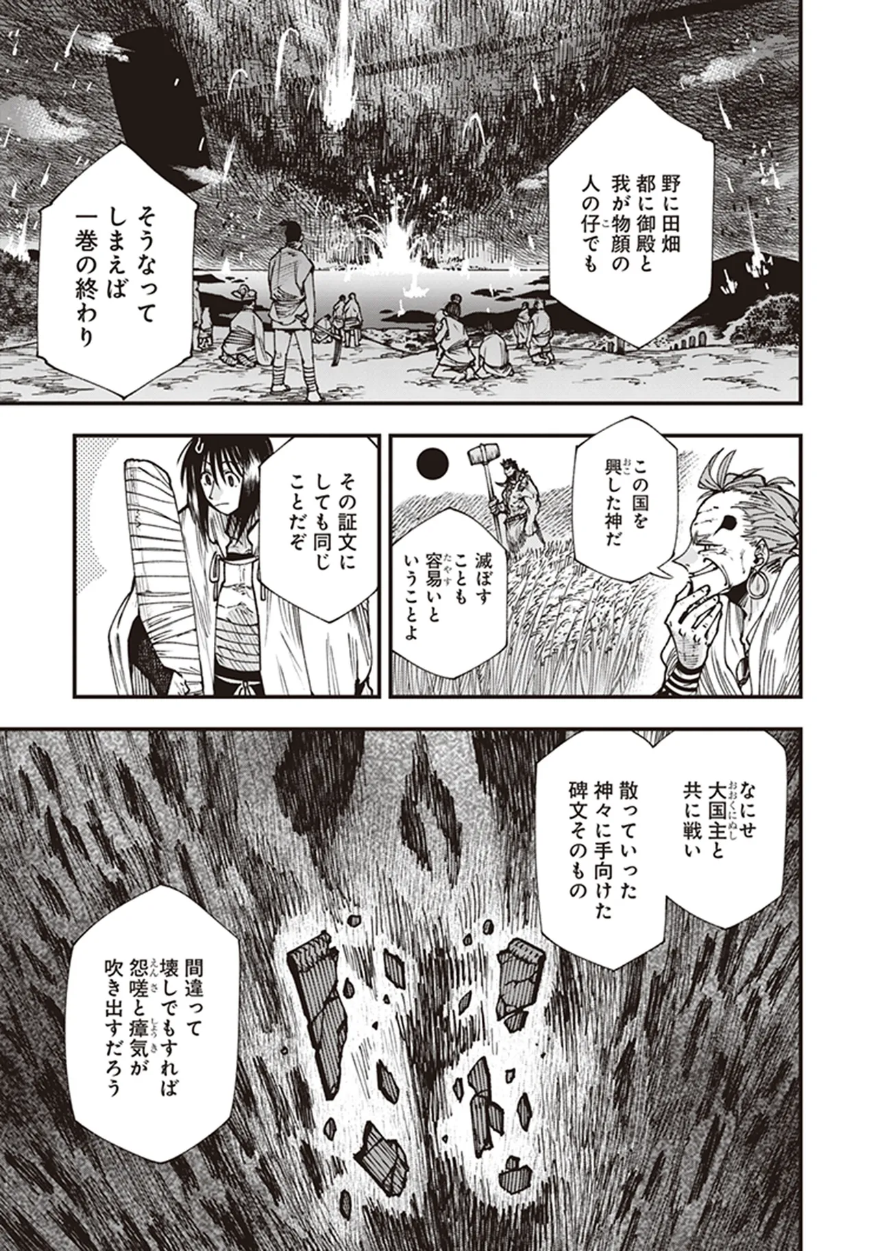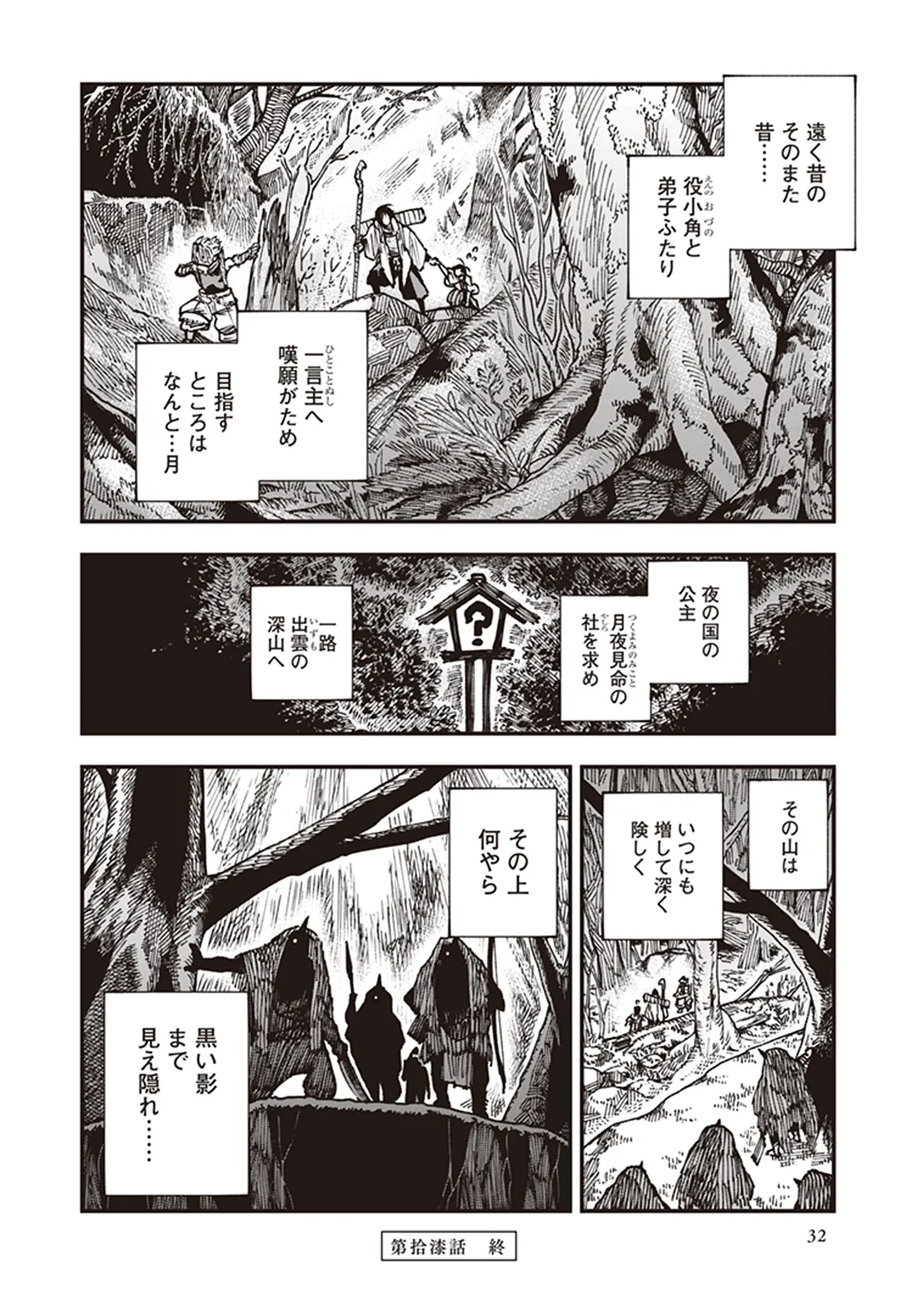 峠鬼 第拾漆話 未知なる月に夢を求めて 峠鬼 投稿者 admin - 4か月 前に 幸せな読書漫画 峠鬼 第拾漆話 未知なる月に夢を求めて , いいねと共有ボタンをクリックすることを忘れないでください. Manga 峠鬼 常に更新されます 無料コミック Comic Top. 他のマンガの更新を読むことを忘れないでください。 マンガコレクションのリスト 無料コミック Comic Top マンガリストメニューにあります. お友達と共有しましょう! Facebook Twitter Pinterest Whatsapp 前のエピソード すべての章 次のエピソード リスト ページング Loading.. 前のエピソード すべての章 次のエピソード リスト ページング お友達と共有しましょう! Facebook Twitter Pinterest Whatsapp お気に入りに追加に続く 0 人 峠鬼 遥か昔の倭の国の、神代と人世のその間。神々が人間と共存していた時代。 道士・役 小角(えんの おづの)とその弟子、妙(みよ)と善(ぜん)は、 各地の神々をめぐる旅をしていた。 その目的は、あらゆる願いを叶えてくれる龍神・一言主(ひとことぬし)へまみえること。 一行は神々が持つ神器の力をお借りして、一言主が住まう山・葛城山を目指すーー! 俊英・鶴淵けんじが、古代神話にファンタジーやSFの視点を加えて描き出す、全く新しい“古代日本”! 鶴淵けんじ(著者) ファンタジー