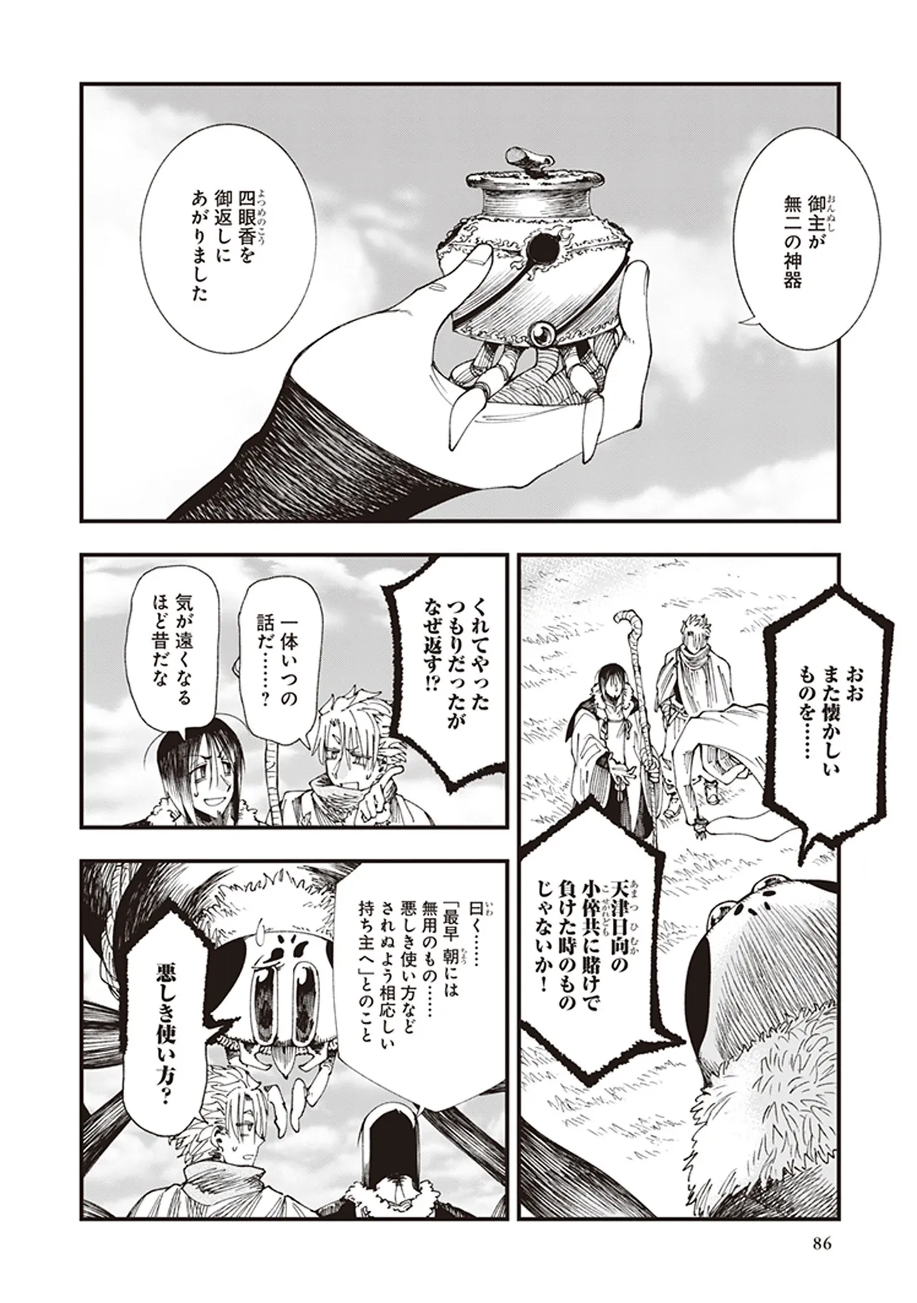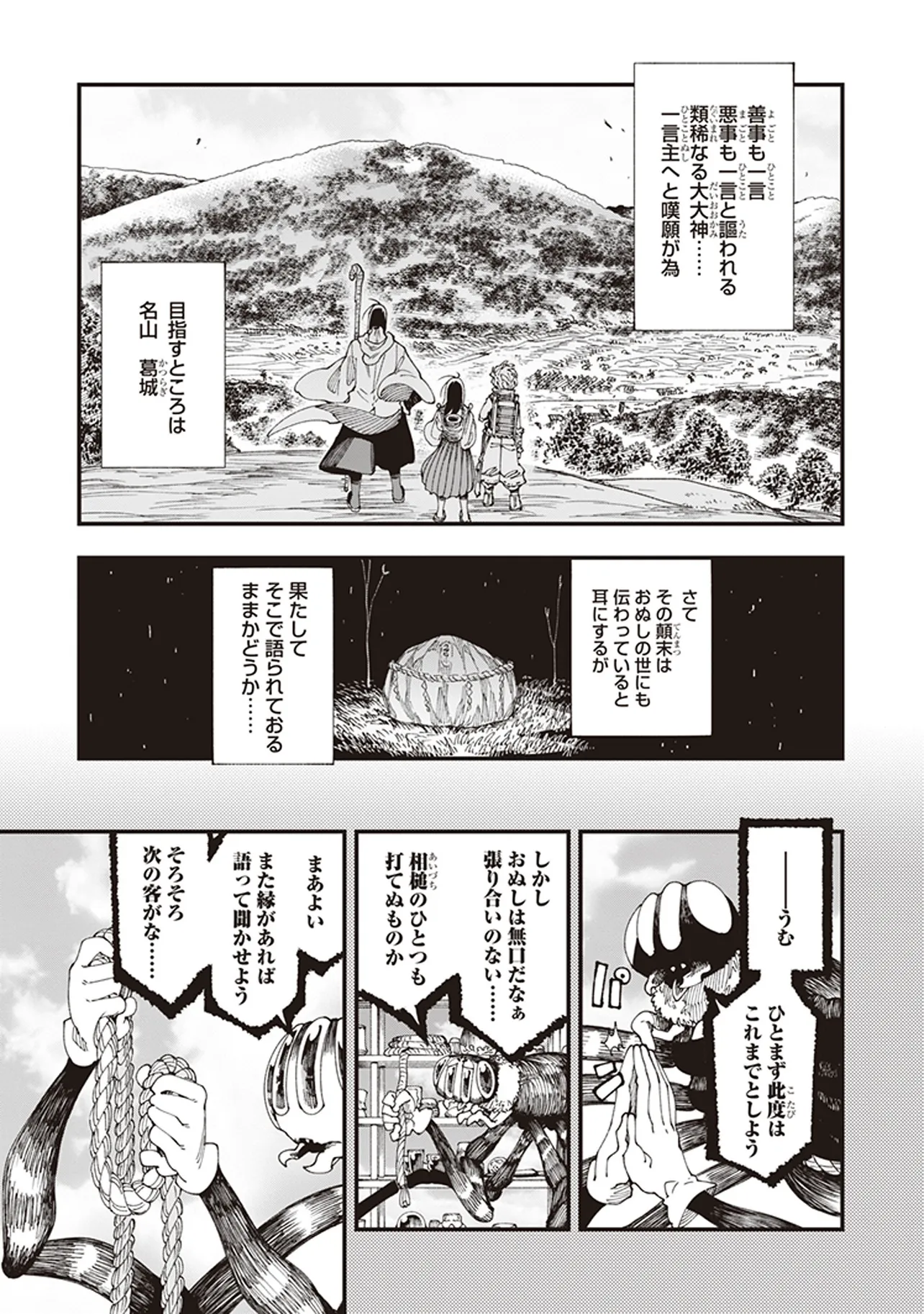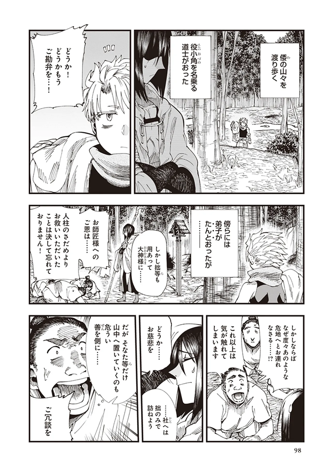 遥か昔の倭の国の、神代と人世のその間。神々が人間と共存していた時代。 道士・役 小角(えんの おづの)とその弟子、妙(みよ)と善(ぜん)は、 各地の神々をめぐる旅をしていた。 その目的は、あらゆる願いを叶えてくれる龍神・一言主(ひとことぬし)へまみえること。 一行は神々が持つ神器の力をお借りして、一言主が住まう山・葛城山を目指すーー! 俊英・鶴淵けんじが、古代神話にファンタジーやSFの視点を加えて描き出す、全く新しい“古代日本”!