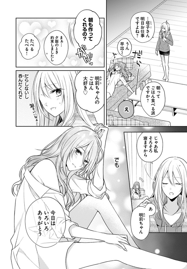 親の海外赴任でひとり日本に残った 女子高生・明莉(あかり)は 母の知人・塔子(とうこ)の家に居候することに。 まじめで仕事が生きがいと評判の塔子だが、 実は私生活は…!? 世話焼き女子高生と残念美人な社会人の デコボコ同居コメディ!!