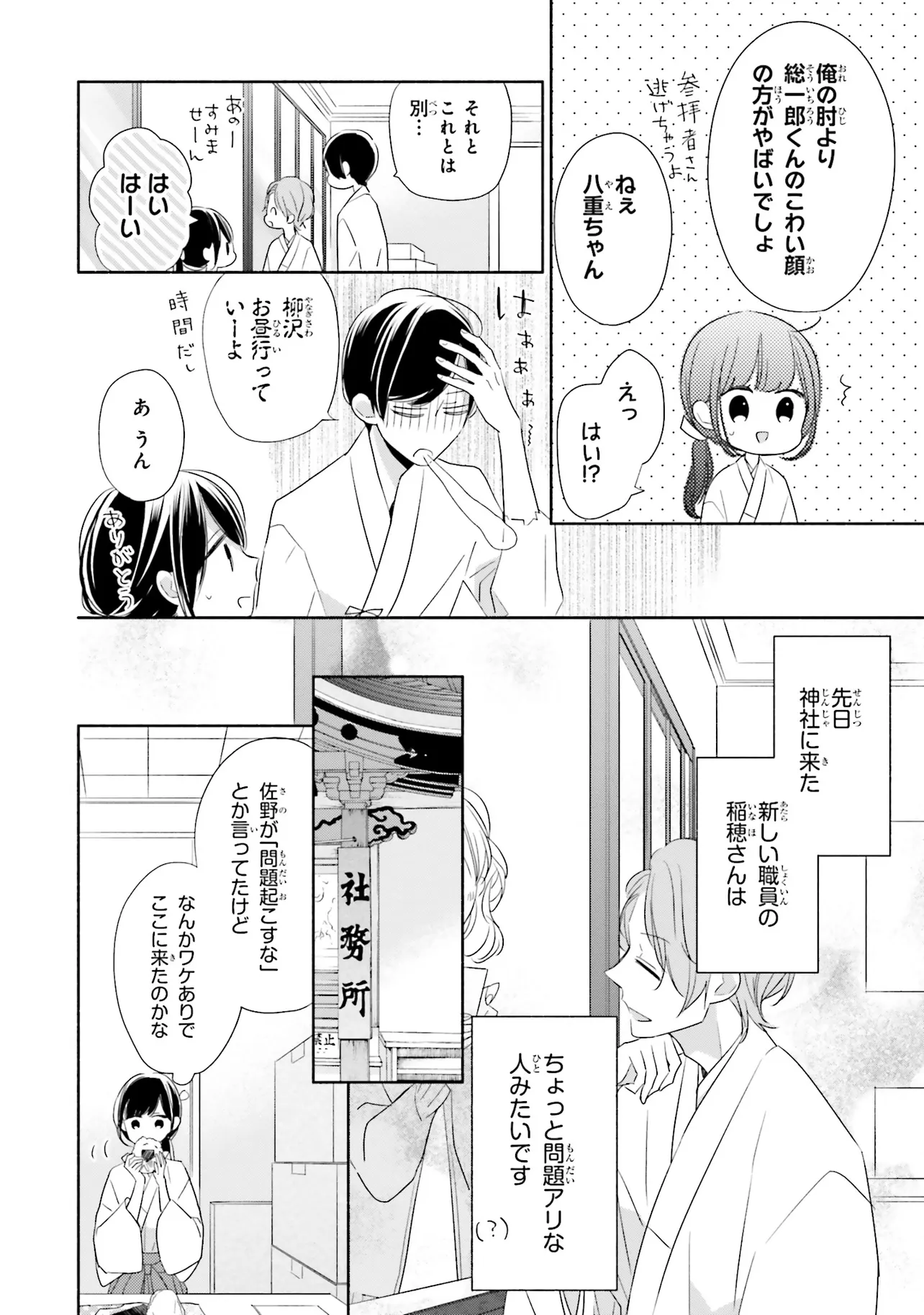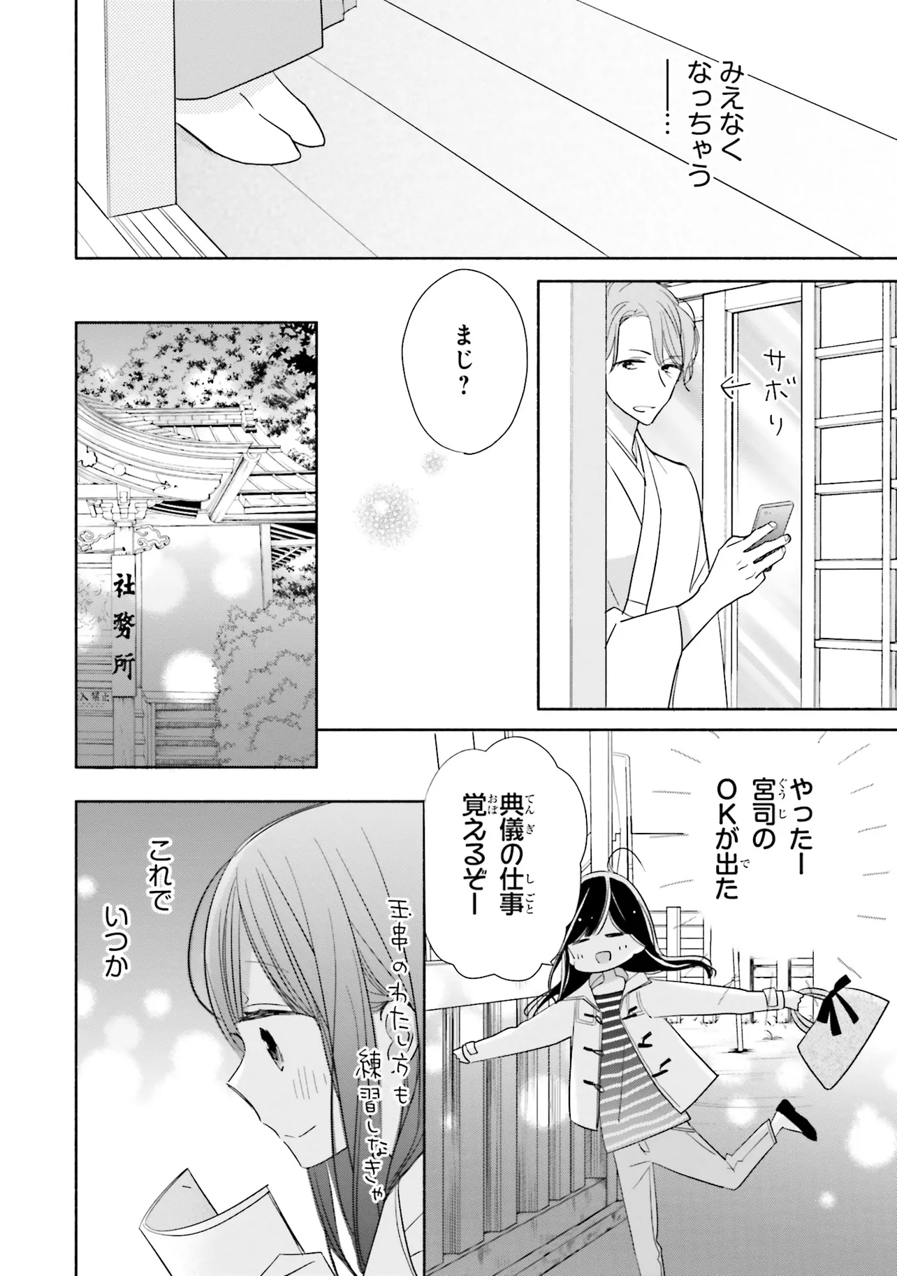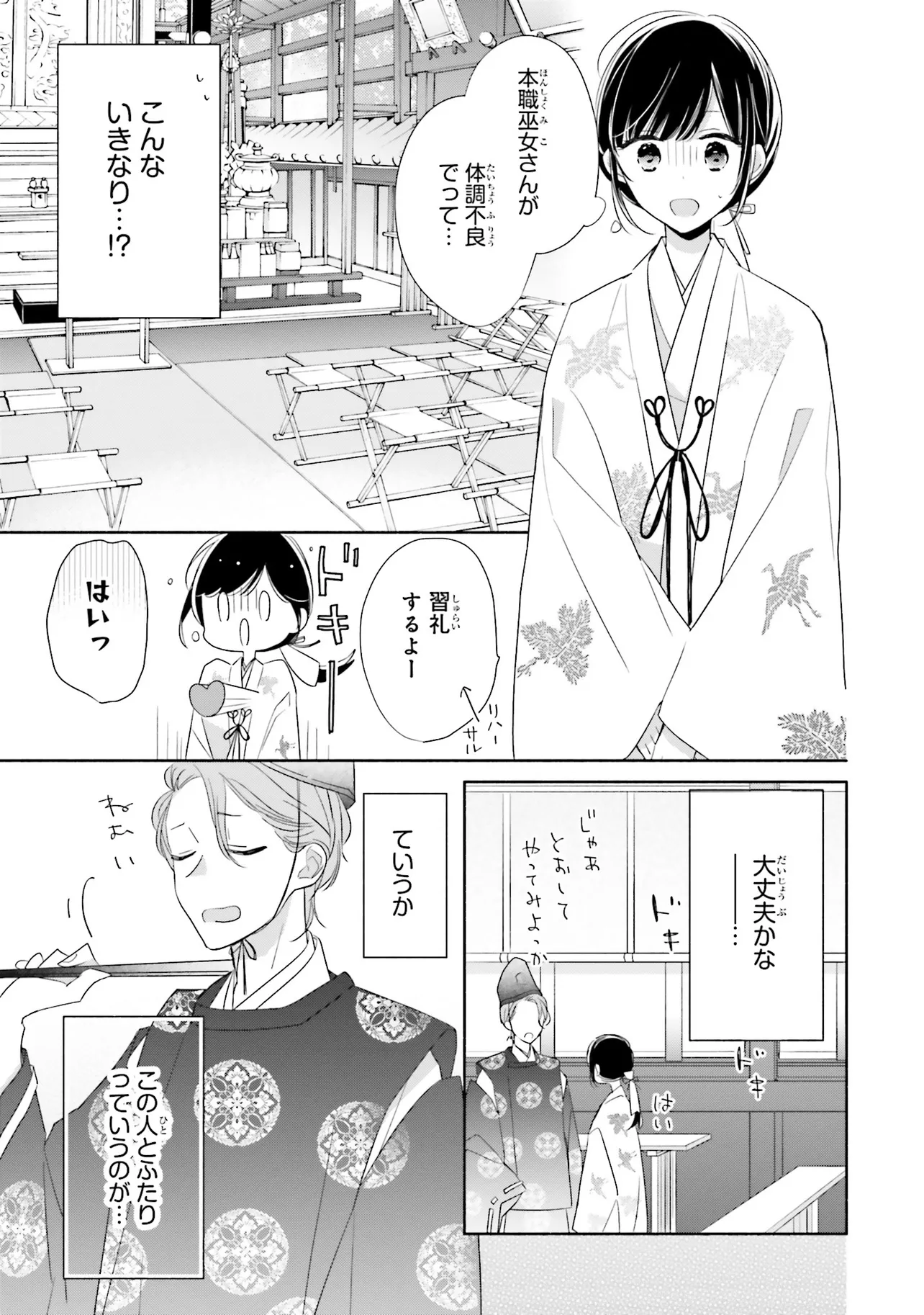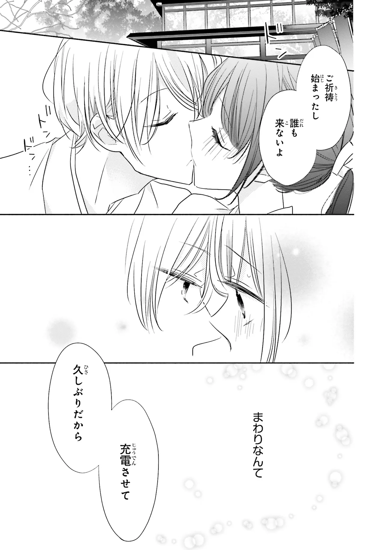 甘いこと、もっといっぱい。 キスシーンも、とにかくいっぱい!?の、かしこみかしこみラブコメディ 親の海外転勤により、東京から親戚のいる田舎に移り住むことになった、女子高生の八重。 彼女はアパートの裏手にある神社で、超イケメンの神職・緒田と出会う。 穏やかで親切な緒田に惹かれていく八重だが――彼からいきなりキスをされてしまい!? キケンな神職に翻弄される、甘々ラブコメディ☆