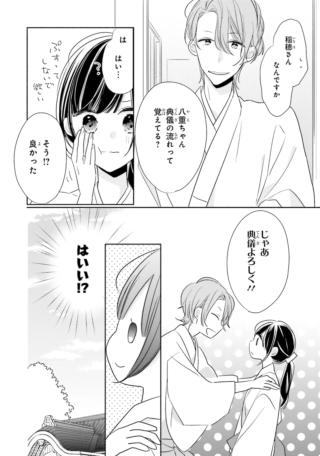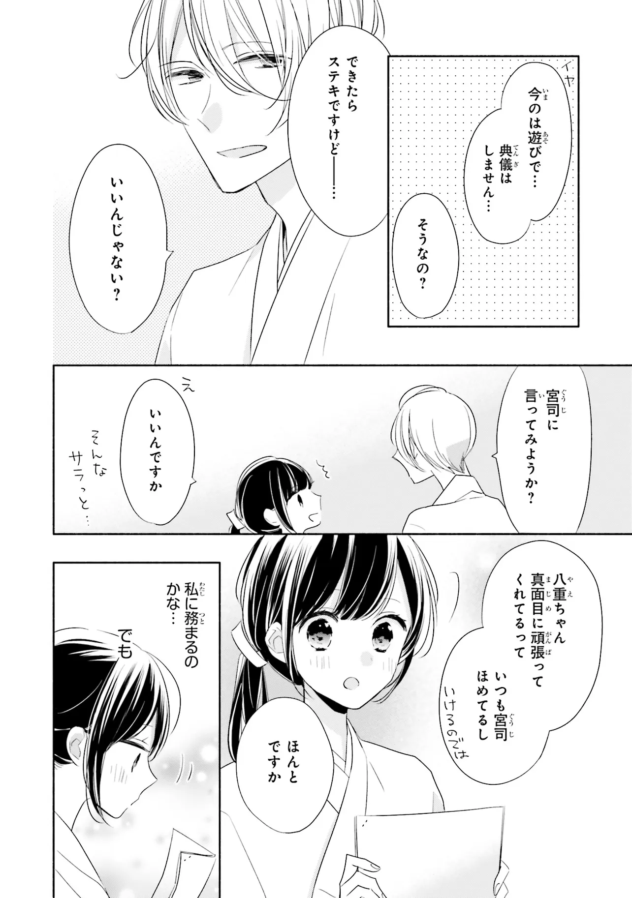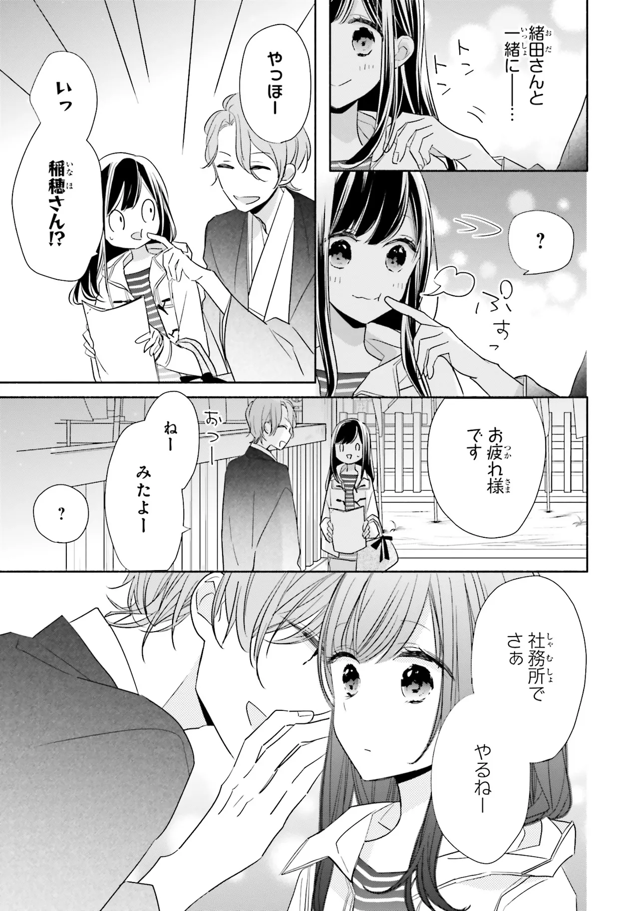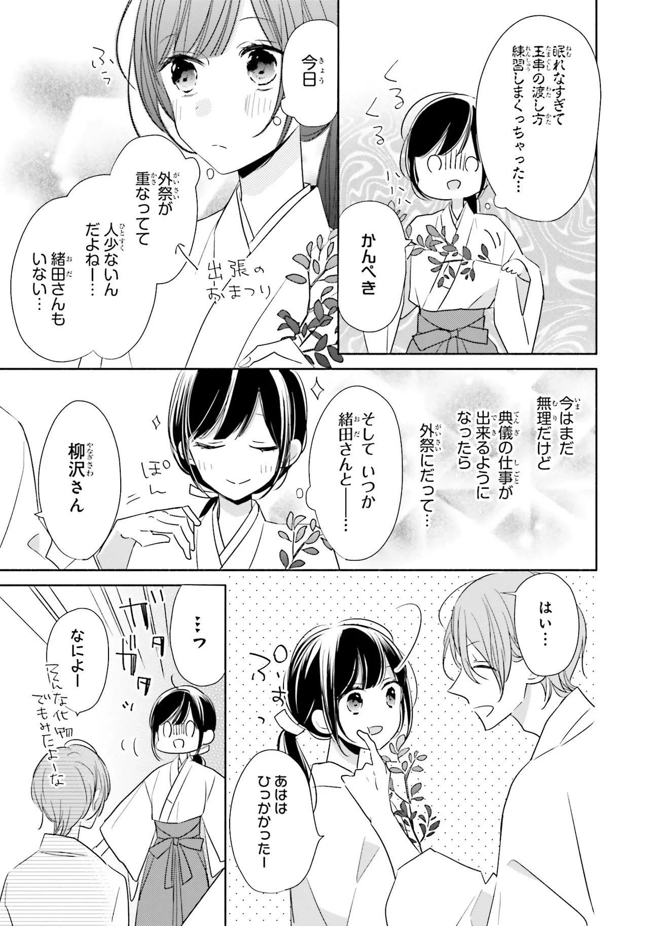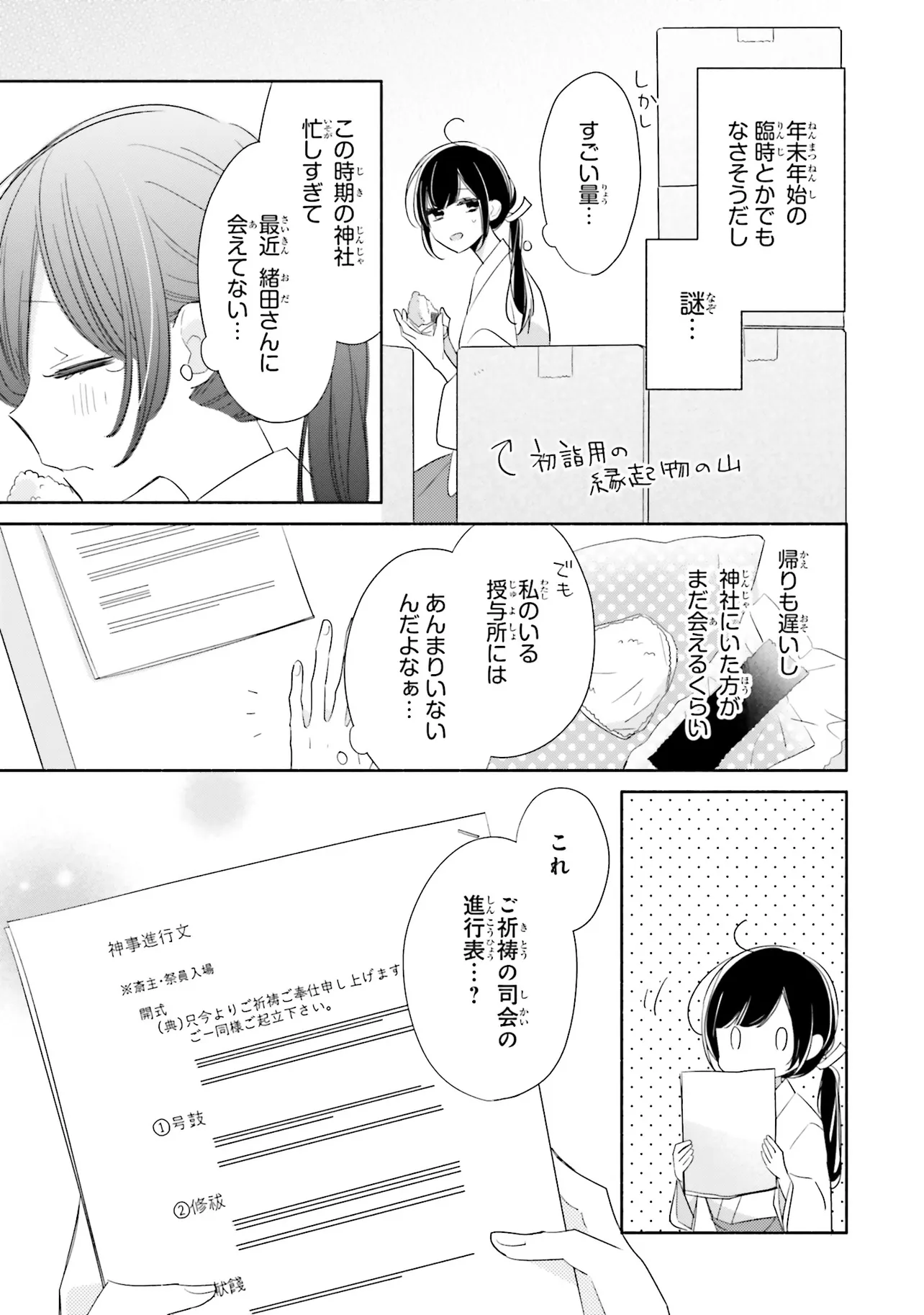 甘いこと、もっといっぱい。 キスシーンも、とにかくいっぱい!?の、かしこみかしこみラブコメディ 親の海外転勤により、東京から親戚のいる田舎に移り住むことになった、女子高生の八重。 彼女はアパートの裏手にある神社で、超イケメンの神職・緒田と出会う。 穏やかで親切な緒田に惹かれていく八重だが――彼からいきなりキスをされてしまい!? キケンな神職に翻弄される、甘々ラブコメディ☆