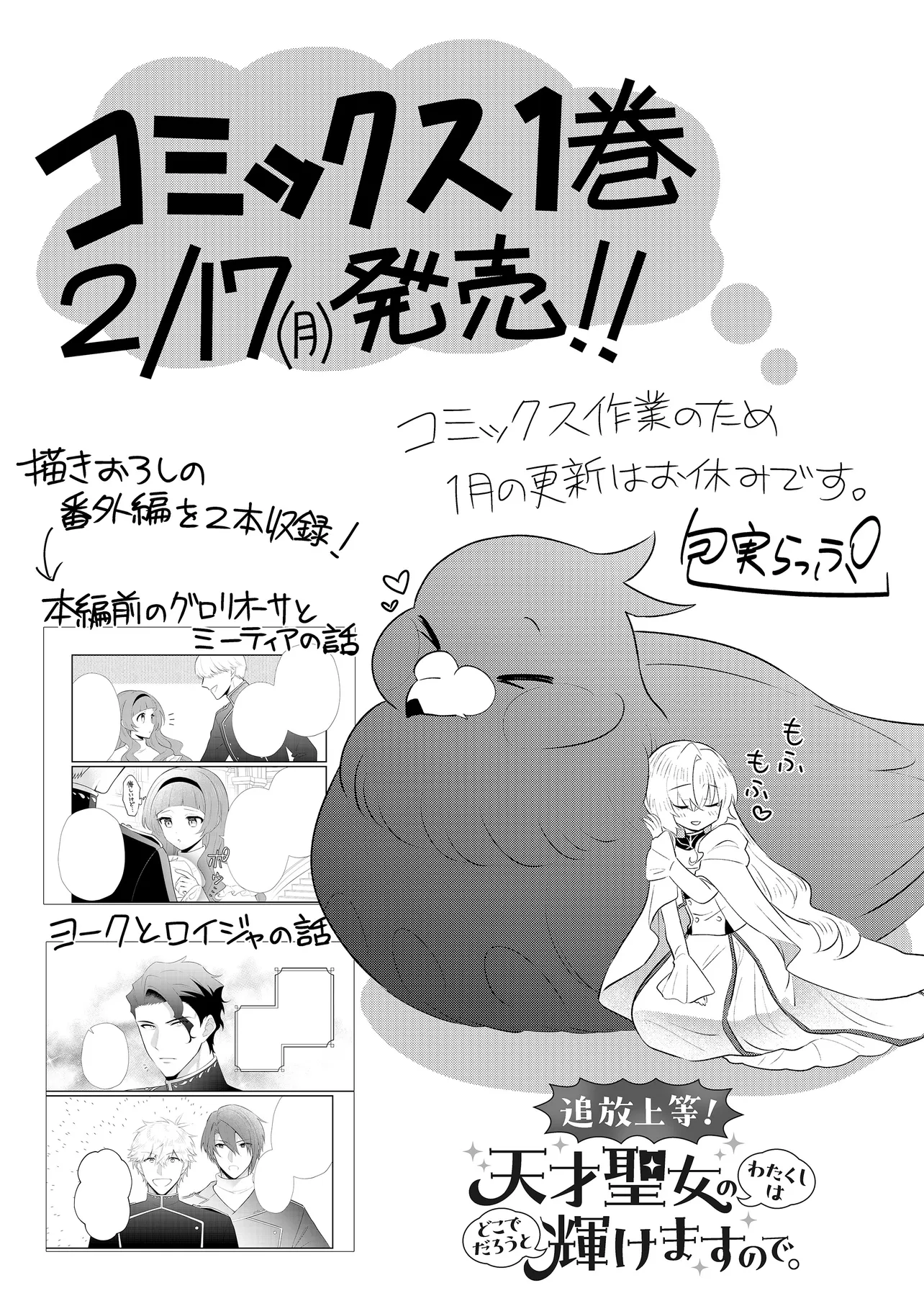 “追放上等! 天才聖女のわたくしは、どこでだろうと輝けますので。” コミックス1巻発売と休載のお知らせ