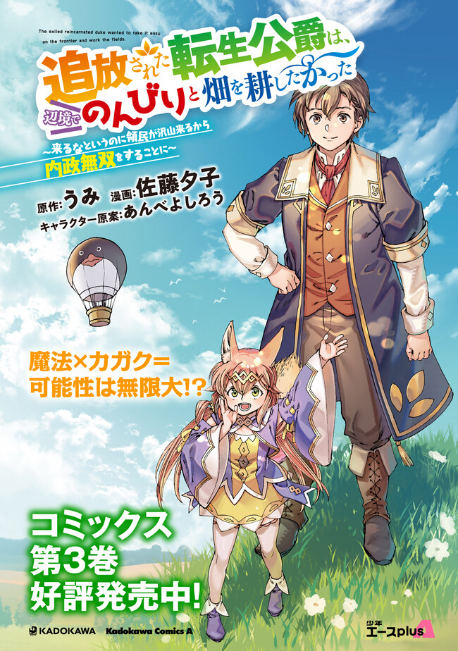 “追放された転生公爵は、辺境でのんびりと畑を耕したかった ~来るなというのに領民が沢山来るから内政無双をすることに~” コミックス第3巻発売告知