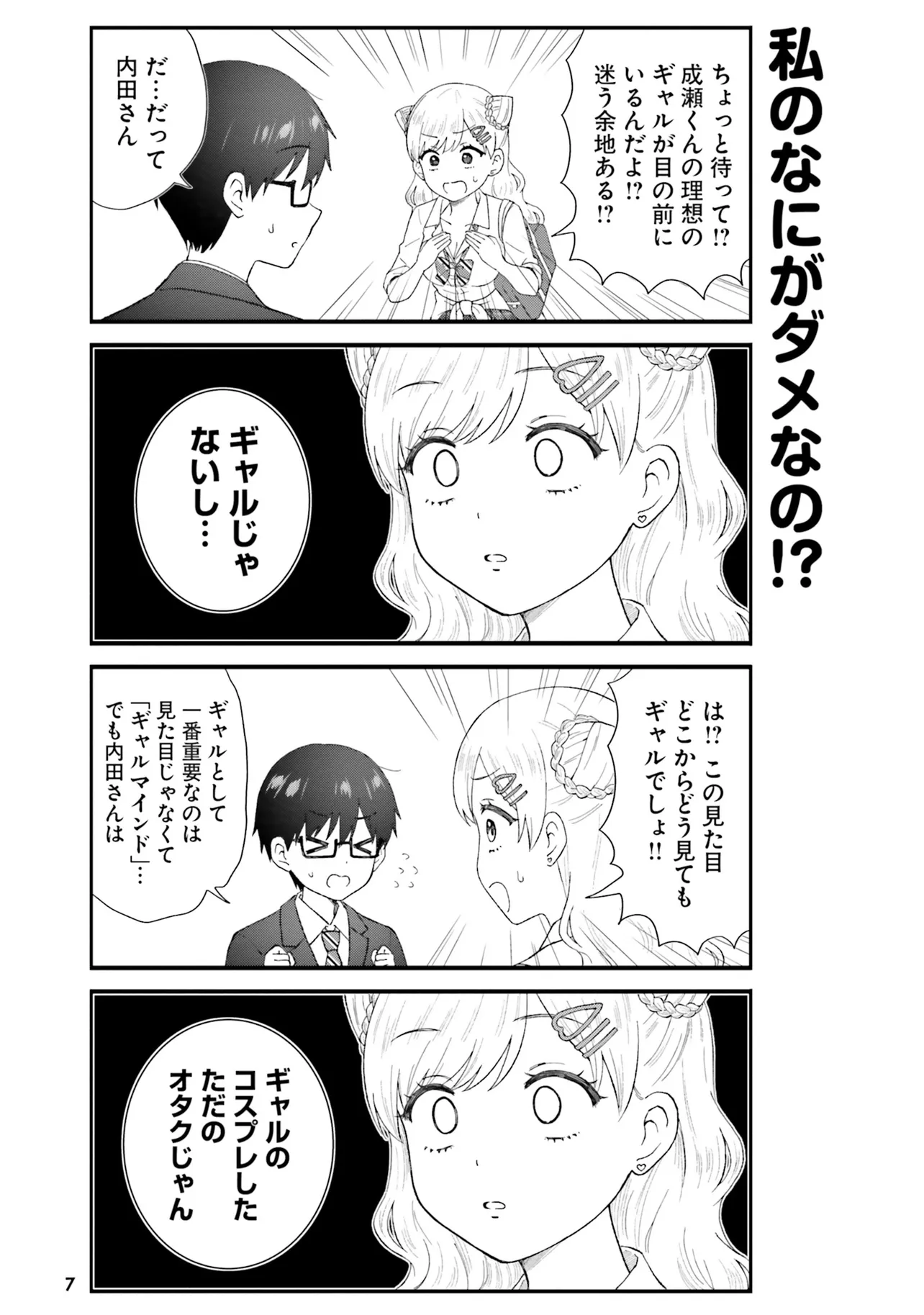壮絶な努力の末、成瀬くんの大好きなギャルに「見た目上」なりきった内田さんは、中学の時から好きだった成瀬くんとようやく付き合えると盛り上がるが…。