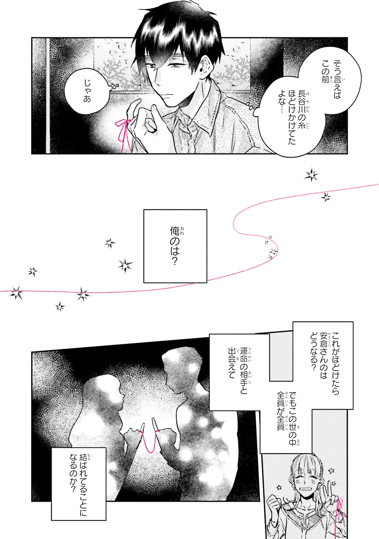 《運命の赤い糸》が見える航介は、大学の同期・ゆかに片思い中。 しかし、航介はその想いを胸に隠していた。 なぜなら二人の《運命の赤い糸》はつながっていなくて……。 貴方は運命を信じますか? 運命に翻弄される大人の恋を描いた、じれキュンラブストーリー。