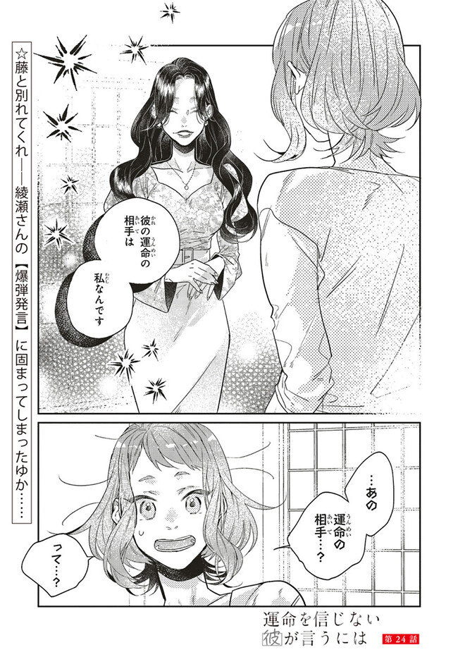 運命を信じない彼が言うには 第24話-① 運命を信じない彼が言うには 投稿者 admin - 2年 前に 幸せな読書漫画 運命を信じない彼が言うには 第24話-① , いいねと共有ボタンをクリックすることを忘れないでください. Manga 運命を信じない彼が言うには 常に更新されます 無料コミック Comic Top. 他のマンガの更新を読むことを忘れないでください。 マンガコレクションのリスト 無料コミック Comic Top マンガリストメニューにあります. お友達と共有しましょう! Facebook Twitter Pinterest Whatsapp 前のエピソード すべての章 次のエピソード リスト ページング Loading.. 前のエピソード すべての章 次のエピソード リスト ページング お友達と共有しましょう! Facebook Twitter Pinterest Whatsapp お気に入りに追加に続く 3 人 運命を信じない彼が言うには 《運命の赤い糸》が見える航介は、大学の同期・ゆかに片思い中。 しかし、航介はその想いを胸に隠していた。 なぜなら二人の《運命の赤い糸》はつながっていなくて……。 貴方は運命を信じますか? 運命に翻弄される大人の恋を描いた、じれキュンラブストーリー。 おむ・ザ・ライス(著者) 大人の恋恋愛社会人赤い糸運命