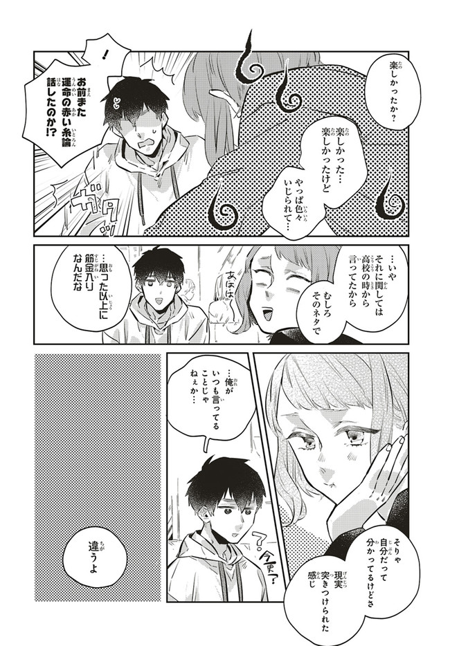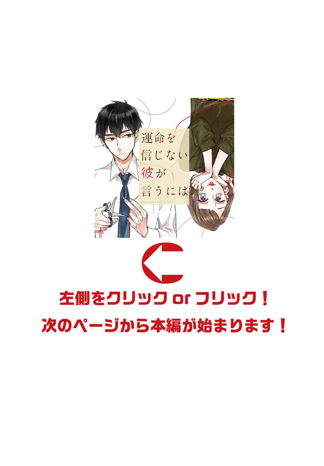 運命を信じない彼が言うには 第3話-② 運命を信じない彼が言うには 投稿者 admin - 3年 前に 幸せな読書漫画 運命を信じない彼が言うには 第3話-② , いいねと共有ボタンをクリックすることを忘れないでください. Manga 運命を信じない彼が言うには 常に更新されます 無料コミック Comic Top. 他のマンガの更新を読むことを忘れないでください。 マンガコレクションのリスト 無料コミック Comic Top マンガリストメニューにあります. お友達と共有しましょう! Facebook Twitter Pinterest Whatsapp 前のエピソード すべての章 次のエピソード リスト ページング Loading.. 前のエピソード すべての章 次のエピソード リスト ページング お友達と共有しましょう! Facebook Twitter Pinterest Whatsapp お気に入りに追加に続く 3 人 運命を信じない彼が言うには 《運命の赤い糸》が見える航介は、大学の同期・ゆかに片思い中。 しかし、航介はその想いを胸に隠していた。 なぜなら二人の《運命の赤い糸》はつながっていなくて……。 貴方は運命を信じますか? 運命に翻弄される大人の恋を描いた、じれキュンラブストーリー。 おむ・ザ・ライス(著者) 大人の恋恋愛社会人赤い糸運命
