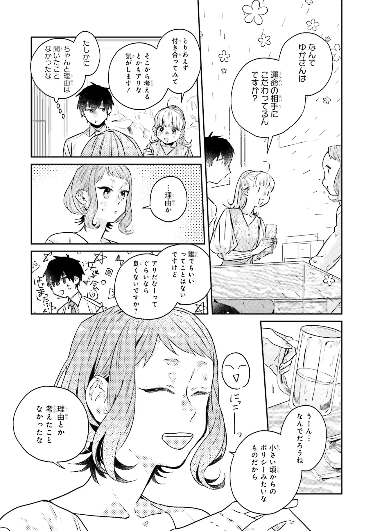 運命を信じない彼が言うには 第9話 運命を信じない彼が言うには 投稿者 admin - 4か月 前に 幸せな読書漫画 運命を信じない彼が言うには 第9話 , いいねと共有ボタンをクリックすることを忘れないでください. Manga 運命を信じない彼が言うには 常に更新されます 無料コミック Comic Top. 他のマンガの更新を読むことを忘れないでください。 マンガコレクションのリスト 無料コミック Comic Top マンガリストメニューにあります. お友達と共有しましょう! Facebook Twitter Pinterest Whatsapp 前のエピソード すべての章 次のエピソード リスト ページング Loading.. 前のエピソード すべての章 次のエピソード リスト ページング お友達と共有しましょう! Facebook Twitter Pinterest Whatsapp お気に入りに追加に続く 3 人 運命を信じない彼が言うには 《運命の赤い糸》が見える航介は、大学の同期・ゆかに片思い中。 しかし、航介はその想いを胸に隠していた。 なぜなら二人の《運命の赤い糸》はつながっていなくて……。 貴方は運命を信じますか? 運命に翻弄される大人の恋を描いた、じれキュンラブストーリー。 おむ・ザ・ライス(著者) 大人の恋恋愛社会人赤い糸運命
