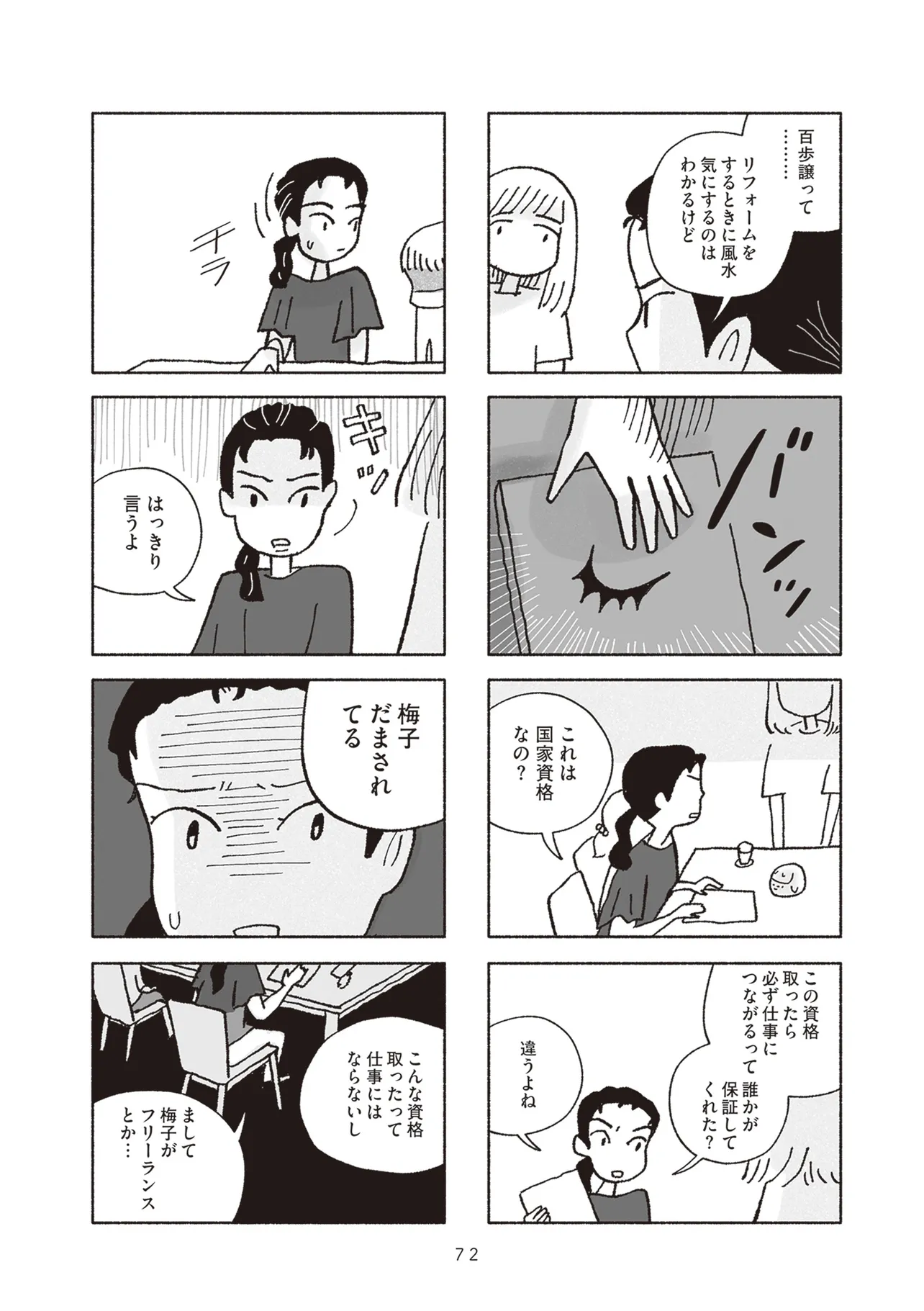 2人の子供と優しい夫に囲まれて幸せな家庭を築く一方、自分に自信がもてずうじうじしがちな専業主婦の梅子。父と母の死を経て、梅子は実家の整理とリフォームを計画するが、その実家で娘が怪我をするなど不運な出来事が続き不安を覚えていた。そんな時、看護師として大病院で働く親友のあかねから風水を勧められる。実はあかねも進展しない彼との関係に焦りを感じ、定期的に電話占いを利用していたのだ。最初は半信半疑だった梅子だが、とある事故をきっかけに風水師に頼ることを決意する。風水師の助言に従って生活を送ると小さな幸運が続き、どんどん風水にハマっていった梅子は、行き過ぎた行動で周囲を巻き込み始める。そんな梅子に不信感を覚えた娘の結花は、母に内緒であかねに相談するが…。過去のトラウマ、将来への不安、家族や恋人への想い――ただ幸せになることを願い、占いにすがった2人の女性の波乱と縺れを描くセミフィクション。
