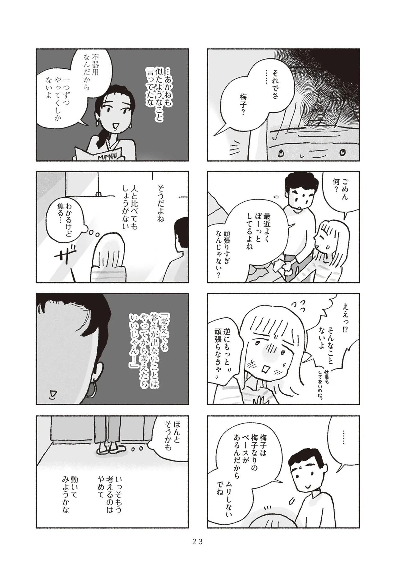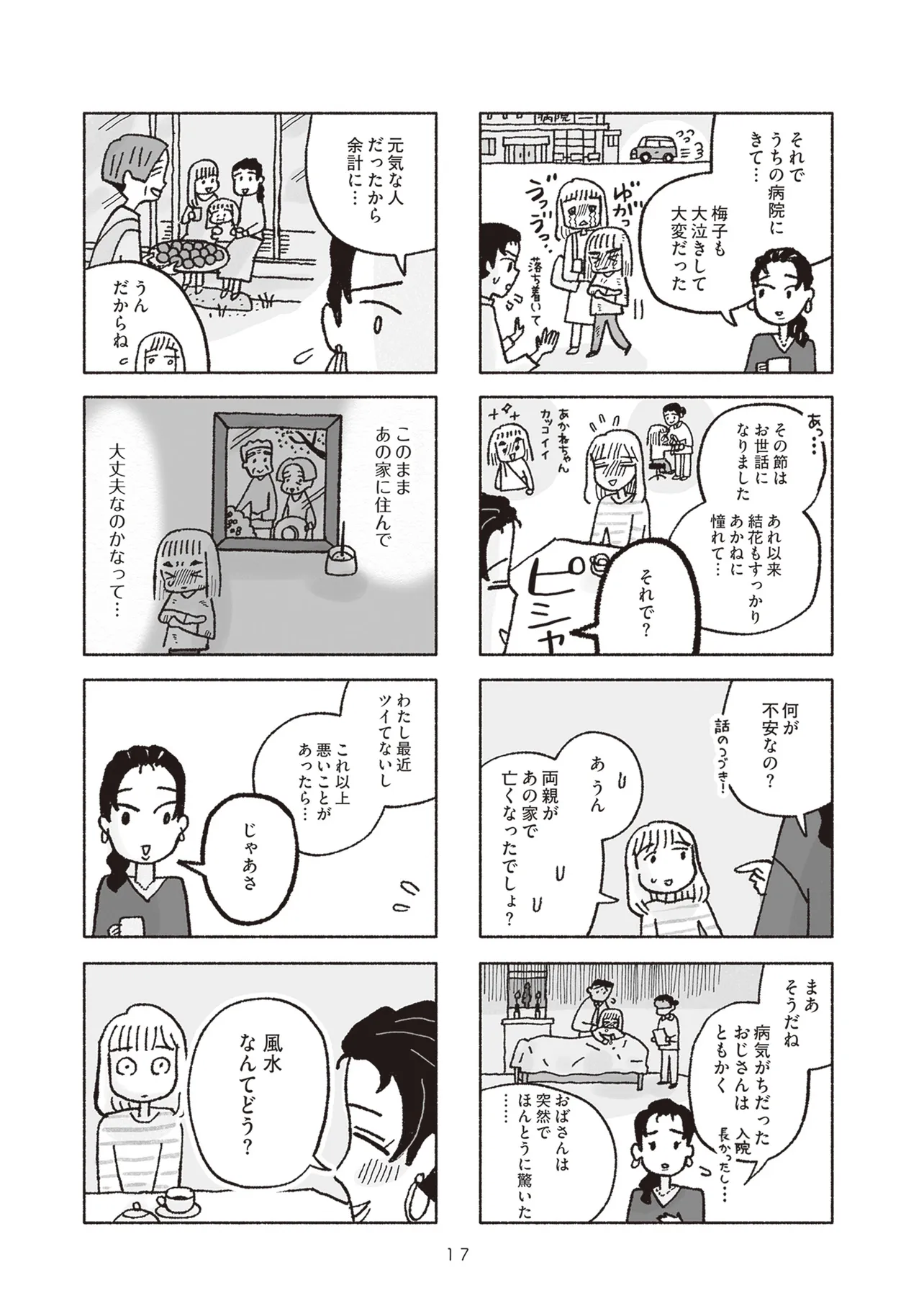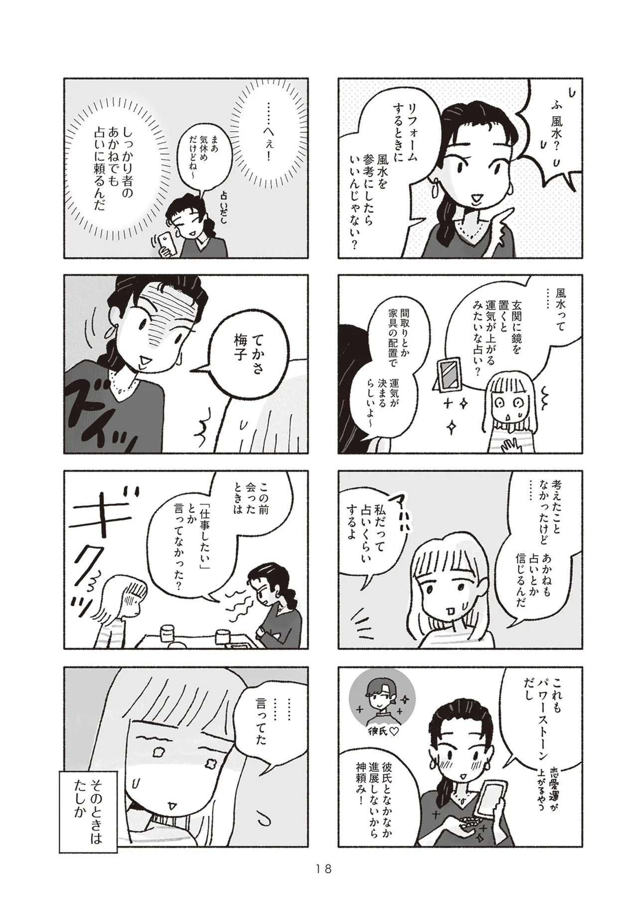 2人の子供と優しい夫に囲まれて幸せな家庭を築く一方、自分に自信がもてずうじうじしがちな専業主婦の梅子。父と母の死を経て、梅子は実家の整理とリフォームを計画するが、その実家で娘が怪我をするなど不運な出来事が続き不安を覚えていた。そんな時、看護師として大病院で働く親友のあかねから風水を勧められる。実はあかねも進展しない彼との関係に焦りを感じ、定期的に電話占いを利用していたのだ。最初は半信半疑だった梅子だが、とある事故をきっかけに風水師に頼ることを決意する。風水師の助言に従って生活を送ると小さな幸運が続き、どんどん風水にハマっていった梅子は、行き過ぎた行動で周囲を巻き込み始める。そんな梅子に不信感を覚えた娘の結花は、母に内緒であかねに相談するが…。過去のトラウマ、将来への不安、家族や恋人への想い――ただ幸せになることを願い、占いにすがった2人の女性の波乱と縺れを描くセミフィクション。