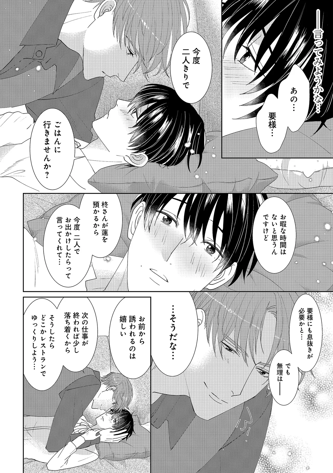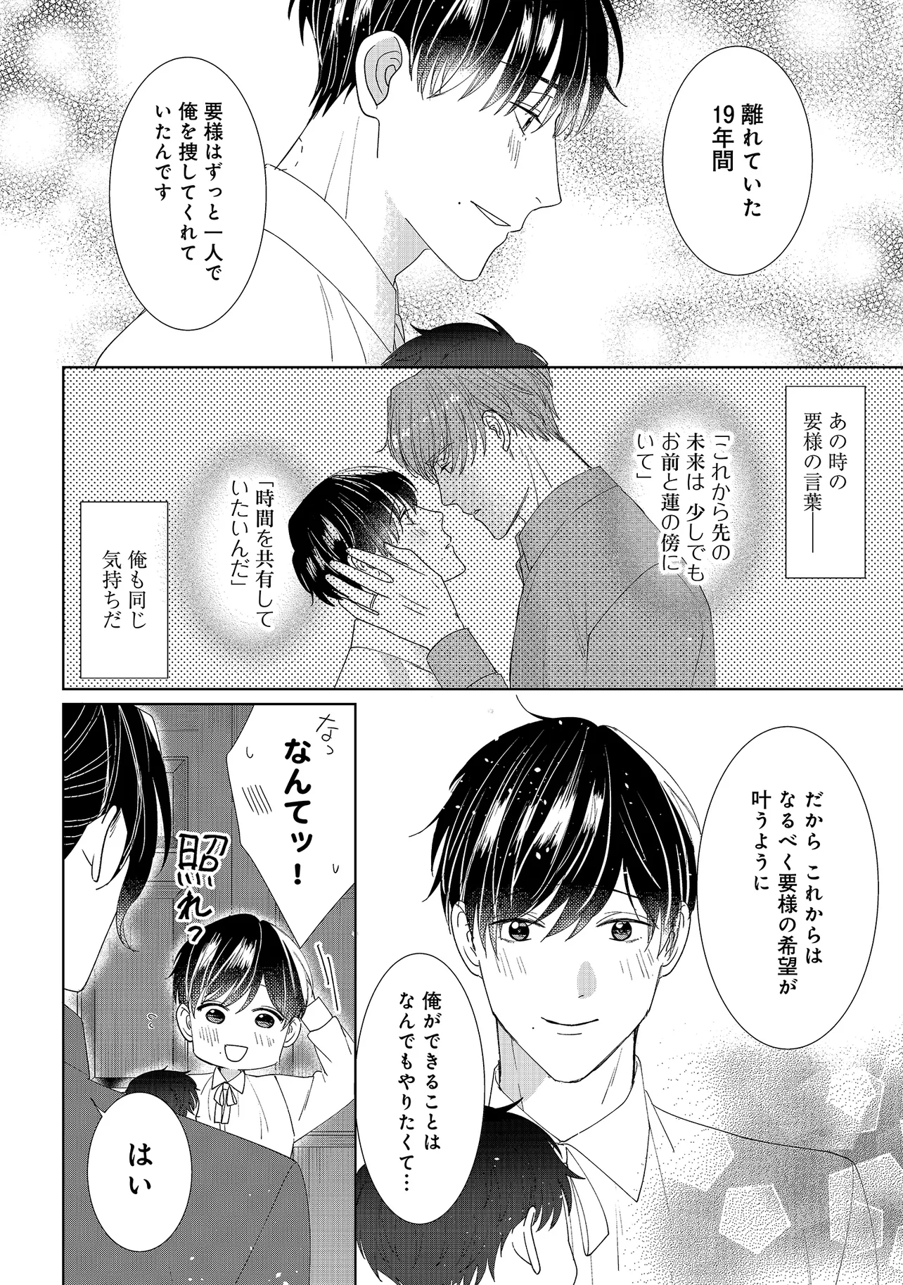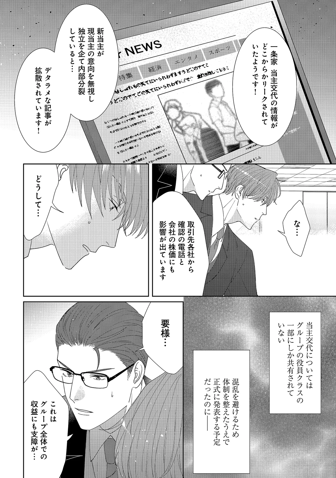 一族全員がαである由緒正しい家柄の一条家。 そこに代々仕えてきたβ家系の朝桐家の翔と、 一条家の御曹司である要は、幼い頃からお互いに想い合う仲。 「大人になったら結婚しよう」と約束した二人だったが、 バース性検査で翔はβではなくΩだと診断され、二人の仲は引き裂かれてしまう。 しかし19年後、偶然にも二人が再会したことで運命が大きく動き出し…。