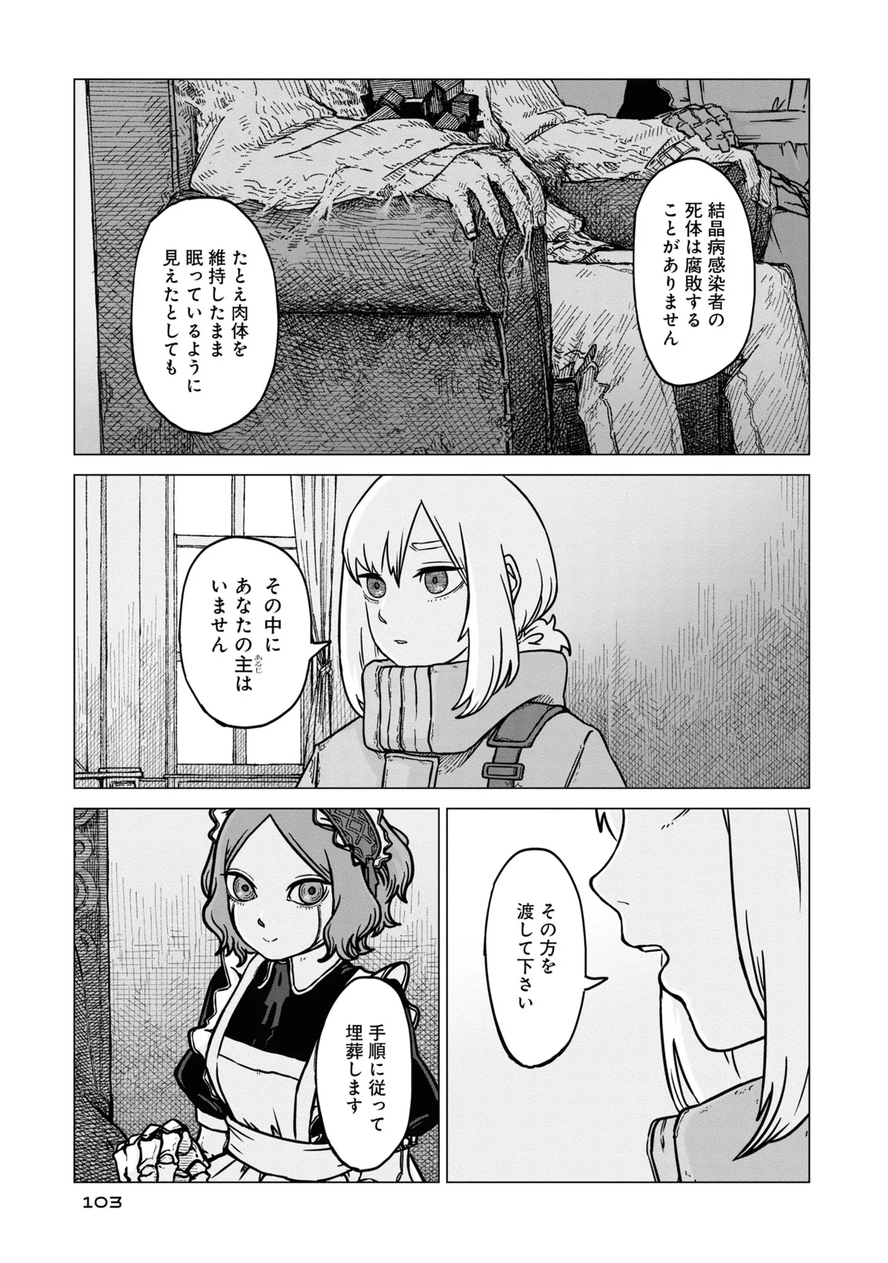 ウスズミの果て 第四話 洋館 ウスズミの果て 投稿者 admin - 7か月 前に 幸せな読書漫画 ウスズミの果て 第四話 洋館 , いいねと共有ボタンをクリックすることを忘れないでください. Manga ウスズミの果て 常に更新されます 無料コミック Comic Top. 他のマンガの更新を読むことを忘れないでください。 マンガコレクションのリスト 無料コミック Comic Top マンガリストメニューにあります. お友達と共有しましょう! Facebook Twitter Pinterest Whatsapp 前のエピソード すべての章 次のエピソード リスト ページング Loading.. 前のエピソード すべての章 次のエピソード リスト ページング お友達と共有しましょう! Facebook Twitter Pinterest Whatsapp お気に入りに追加に続く 0 人 ウスズミの果て 終末世界を、少女はひとり歩き続ける。彼女の任務は生存者の捜索と土地の浄化。果たして人間は見つかるのか?美しき廃墟のポストアポカリプス・ジャーニー。 岩宗治生(著者)