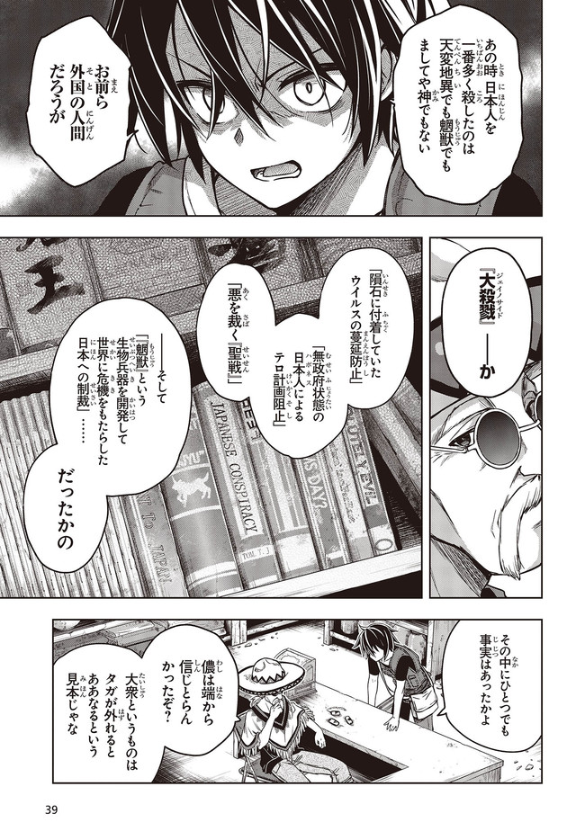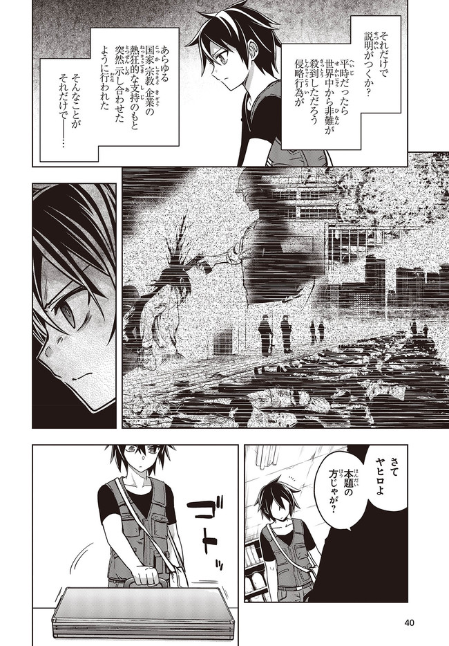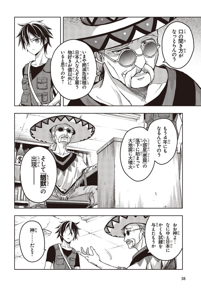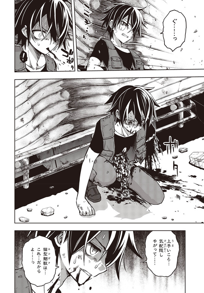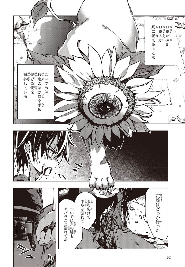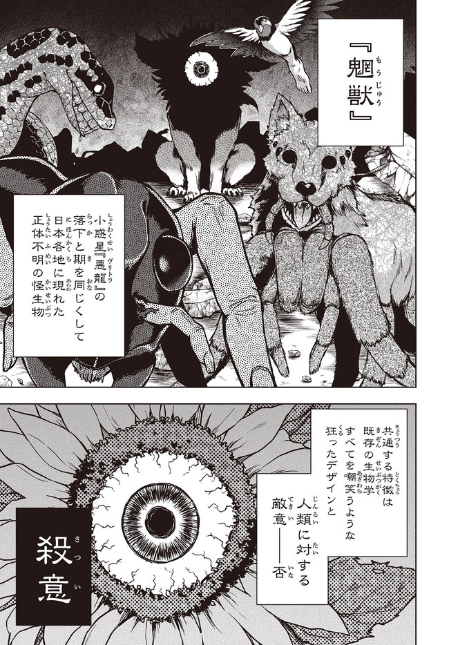 崩壊した日本で、“回収屋”として孤独な日々を過ごしているヤヒロ。今日も回収屋としての仕事を終え、途中“魍獣”という異形に臓物をえぐられながらも、“無事に”寝床にたどり着く。
