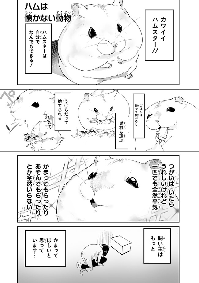 マヂカルラブリー野田クリスタル推薦!! 「こんなにハムスター愛が爆発してる漫画見た事ない!これから飼う人にも読んでほしい!」 いついかなる時もかわいいハムスターと ハムスターを愛しハムスターに愛されたい飼い主がお届けする ハイテンション日常コメディ!! SNSで話題のハムスター漫画、コミックス好評発売中!!