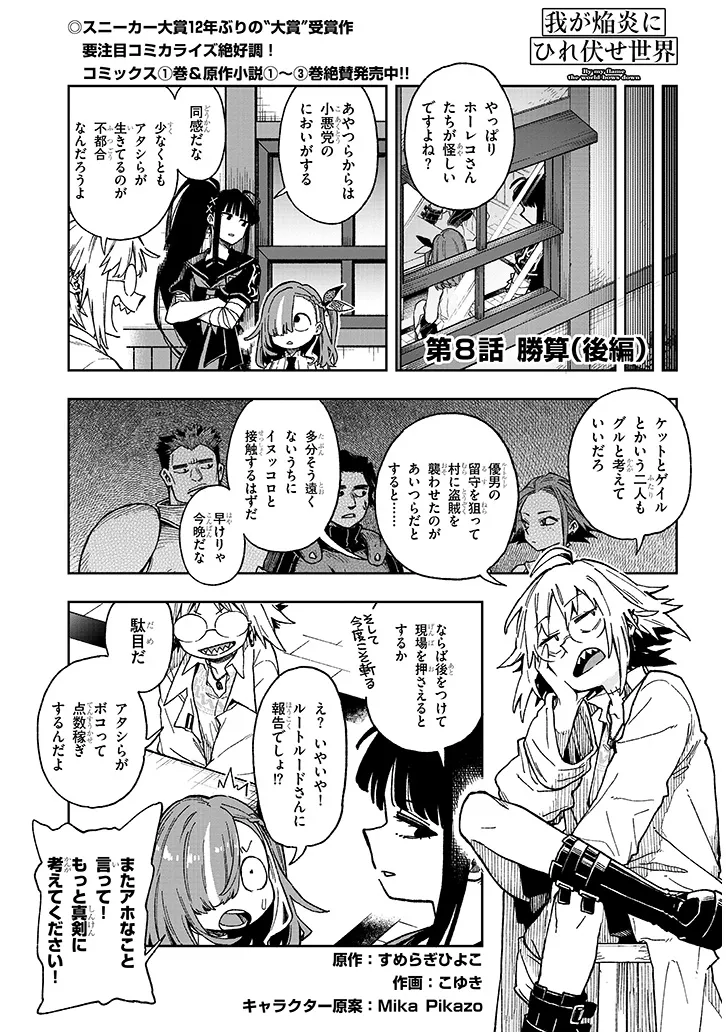 我が焔炎にひれ伏せ世界 第8話後編 我が焔炎にひれ伏せ世界 投稿者 admin - 1年 前に 幸せな読書漫画 我が焔炎にひれ伏せ世界 第8話後編 , いいねと共有ボタンをクリックすることを忘れないでください. Manga 我が焔炎にひれ伏せ世界 常に更新されます 無料コミック Comic Top. 他のマンガの更新を読むことを忘れないでください。 マンガコレクションのリスト 無料コミック Comic Top マンガリストメニューにあります. お友達と共有しましょう! Facebook Twitter Pinterest Whatsapp 前のエピソード すべての章 次のエピソード リスト ページング Loading.. 前のエピソード すべての章 次のエピソード リスト ページング お友達と共有しましょう! Facebook Twitter Pinterest Whatsapp お気に入りに追加に続く 1 人 我が焔炎にひれ伏せ世界 (あわよくば何か燃やしたい……)という欲求を抱いていたホムラは異世界へと招かれる。 そこには同じようにヘンな女子高生達が集められており、何でも特別な才能を持つ彼女達に「この世界を救って欲しい」という話のようで? 100年振りの魔王復活、混乱に乗じて蔓延る悪党共。天下動乱の世を正す為、世界の命運は少女たちに託された――。 スニーカー大賞12年ぶり「大賞」受賞作、 最強爆焔娘の異世界コメディ、堂々コミカライズ!! Mika Pikazomochaこゆきすめらぎひよこ 女主人公異世界転生