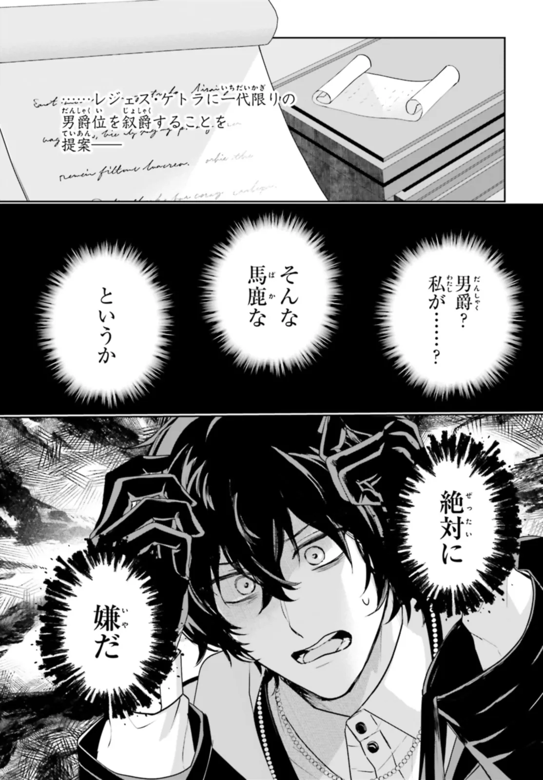 伯爵令嬢リューディアは、父が王女を暴行したという冤罪で一家没落の危機に瀕していた。しかし、ある日突然、父の無実が証明されたとしらせを受ける。闇魔術師のレジェスという男が、功績を上げたその褒美に伯爵家の汚名返上を要求したという。