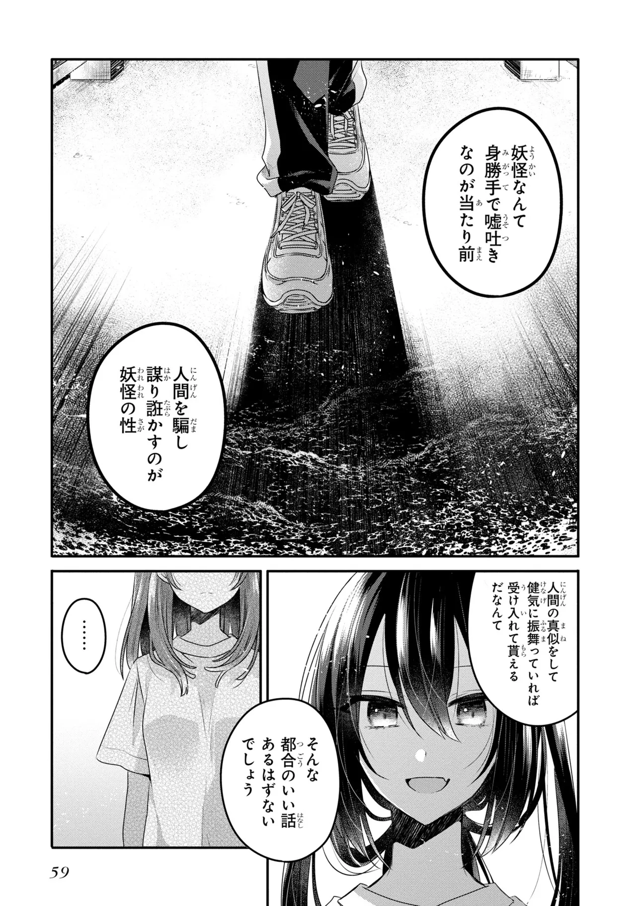 私を喰べたい、ひとでなし 15話 心の在処 私を喰べたい、ひとでなし 投稿者 admin - 1か月 前に 幸せな読書漫画 私を喰べたい、ひとでなし 15話 心の在処 , いいねと共有ボタンをクリックすることを忘れないでください. Manga 私を喰べたい、ひとでなし 常に更新されます 無料コミック Comic Top. 他のマンガの更新を読むことを忘れないでください。 マンガコレクションのリスト 無料コミック Comic Top マンガリストメニューにあります. お友達と共有しましょう! Facebook Twitter Pinterest Whatsapp 前のエピソード すべての章 次のエピソード リスト ページング Loading.. 前のエピソード すべての章 次のエピソード リスト ページング お友達と共有しましょう! Facebook Twitter Pinterest Whatsapp お気に入りに追加に続く 4 人 私を喰べたい、ひとでなし 海辺の街にひとり暮らす女子高生・比名子(ひなこ)は、凄惨な過去の記憶に囚われ、海の底にいるようないきぐるしさを覚える日々を送っていた。 そんな彼女の前に、ある日汐莉(しおり)と名乗る海色の瞳をした少女が現れ…。 「私は君を食べに来ました。」 「君が美味しく育つまで、私が君を守ってみせます。」 この邂逅がもたらすのは破滅か、それとも――。 苗川采(著者) BOOK☆WALKERでセール中!!人外女子高生怪異恋愛百合電撃マオウ