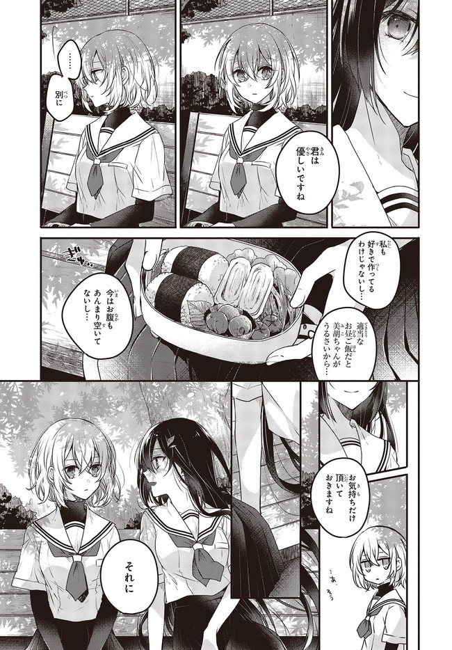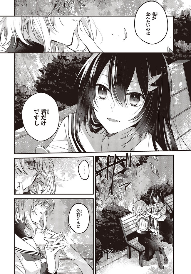 海辺の街にひとり暮らす女子高生・比名子(ひなこ)は、凄惨な過去の記憶に囚われ、海の底にいるようないきぐるしさを覚える日々を送っていた。 そんな彼女の前に、ある日汐莉(しおり)と名乗る海色の瞳をした少女が現れ…。 「私は君を食べに来ました。」 「君が美味しく育つまで、私が君を守ってみせます。」 この邂逅がもたらすのは破滅か、それとも――。