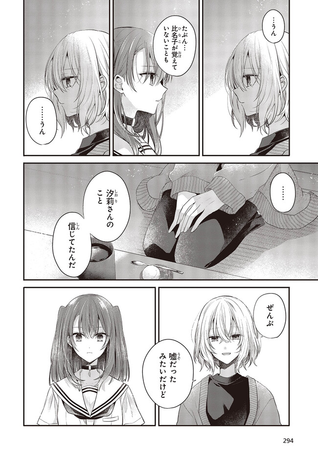 海辺の街にひとり暮らす女子高生・比名子(ひなこ)は、凄惨な過去の記憶に囚われ、海の底にいるようないきぐるしさを覚える日々を送っていた。 そんな彼女の前に、ある日汐莉(しおり)と名乗る海色の瞳をした少女が現れ…。 「私は君を食べに来ました。」 「君が美味しく育つまで、私が君を守ってみせます。」 この邂逅がもたらすのは破滅か、それとも――。