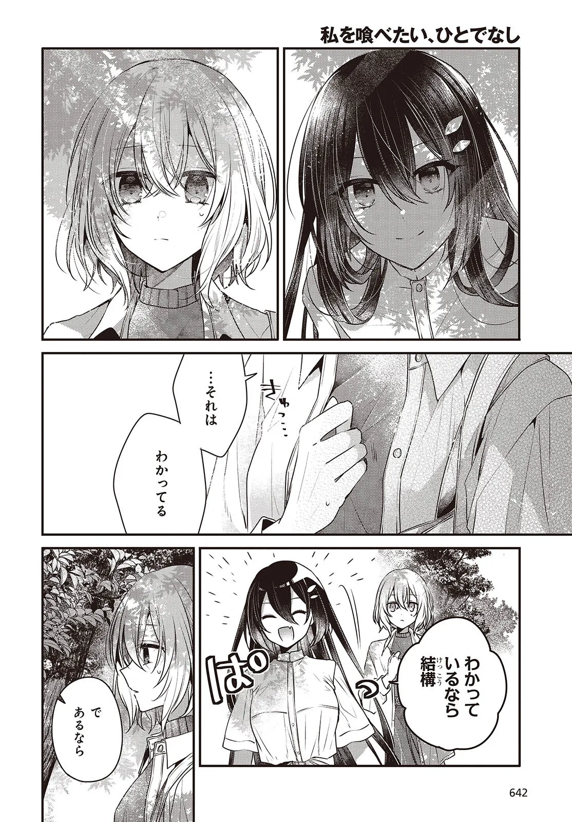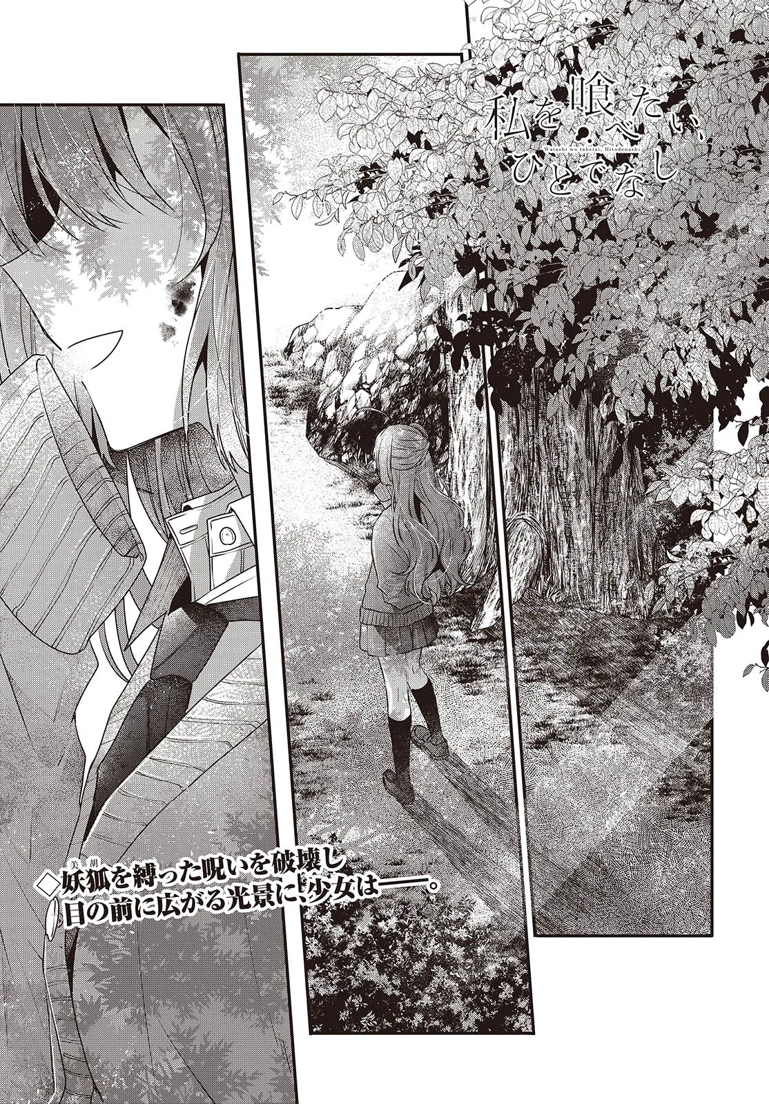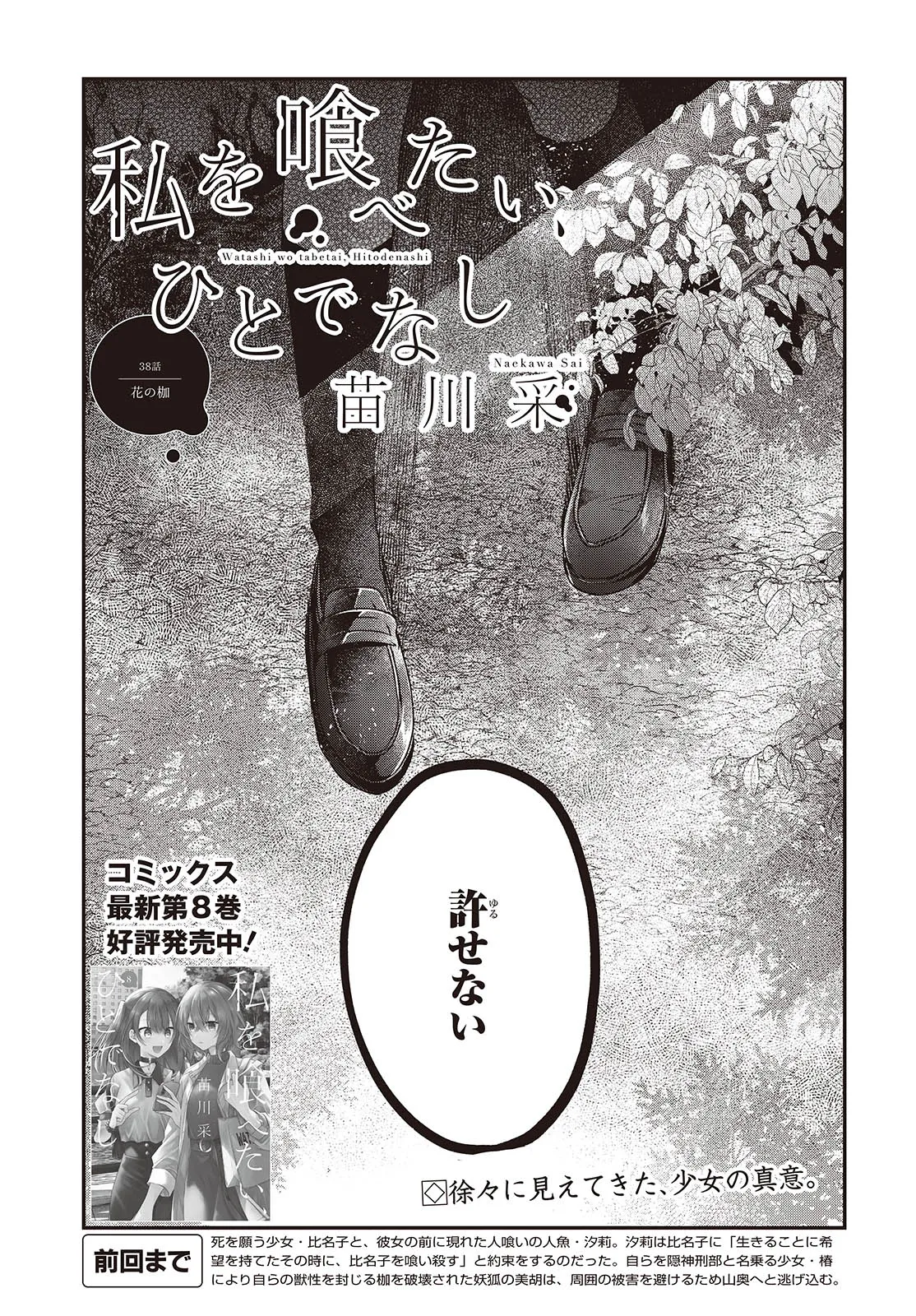私を喰べたい、ひとでなし 第38話① 私を喰べたい、ひとでなし 投稿者 admin - 2年 前に 幸せな読書漫画 私を喰べたい、ひとでなし 第38話① , いいねと共有ボタンをクリックすることを忘れないでください. Manga 私を喰べたい、ひとでなし 常に更新されます 無料コミック Comic Top. 他のマンガの更新を読むことを忘れないでください。 マンガコレクションのリスト 無料コミック Comic Top マンガリストメニューにあります. お友達と共有しましょう! Facebook Twitter Pinterest Whatsapp 前のエピソード すべての章 次のエピソード リスト ページング Loading.. 前のエピソード すべての章 次のエピソード リスト ページング お友達と共有しましょう! Facebook Twitter Pinterest Whatsapp お気に入りに追加に続く 4 人 私を喰べたい、ひとでなし 海辺の街にひとり暮らす女子高生・比名子(ひなこ)は、凄惨な過去の記憶に囚われ、海の底にいるようないきぐるしさを覚える日々を送っていた。 そんな彼女の前に、ある日汐莉(しおり)と名乗る海色の瞳をした少女が現れ…。 「私は君を食べに来ました。」 「君が美味しく育つまで、私が君を守ってみせます。」 この邂逅がもたらすのは破滅か、それとも――。 苗川采(著者) BOOK☆WALKERでセール中!!人外女子高生怪異恋愛百合電撃マオウ