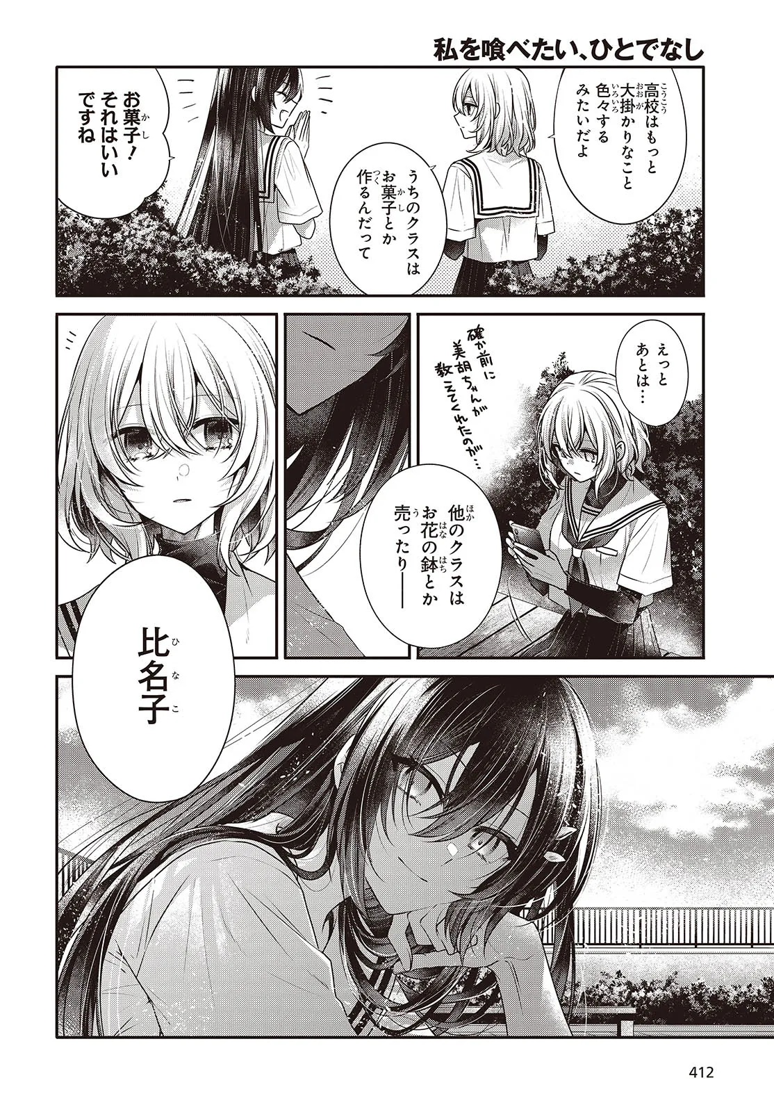 私を喰べたい、ひとでなし 第42話② 私を喰べたい、ひとでなし 投稿者 admin - 1年 前に 幸せな読書漫画 私を喰べたい、ひとでなし 第42話② , いいねと共有ボタンをクリックすることを忘れないでください. Manga 私を喰べたい、ひとでなし 常に更新されます 無料コミック Comic Top. 他のマンガの更新を読むことを忘れないでください。 マンガコレクションのリスト 無料コミック Comic Top マンガリストメニューにあります. お友達と共有しましょう! Facebook Twitter Pinterest Whatsapp 前のエピソード すべての章 次のエピソード リスト ページング Loading.. 前のエピソード すべての章 次のエピソード リスト ページング お友達と共有しましょう! Facebook Twitter Pinterest Whatsapp お気に入りに追加に続く 4 人 私を喰べたい、ひとでなし 海辺の街にひとり暮らす女子高生・比名子(ひなこ)は、凄惨な過去の記憶に囚われ、海の底にいるようないきぐるしさを覚える日々を送っていた。 そんな彼女の前に、ある日汐莉(しおり)と名乗る海色の瞳をした少女が現れ…。 「私は君を食べに来ました。」 「君が美味しく育つまで、私が君を守ってみせます。」 この邂逅がもたらすのは破滅か、それとも――。 苗川采(著者) BOOK☆WALKERでセール中!!人外女子高生怪異恋愛百合電撃マオウ