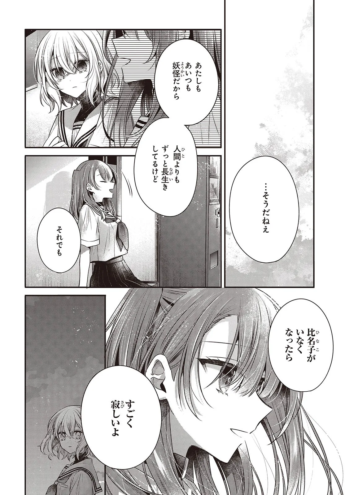 私を喰べたい、ひとでなし 第46話② 私を喰べたい、ひとでなし 投稿者 admin - 9か月 前に 幸せな読書漫画 私を喰べたい、ひとでなし 第46話② , いいねと共有ボタンをクリックすることを忘れないでください. Manga 私を喰べたい、ひとでなし 常に更新されます 無料コミック Comic Top. 他のマンガの更新を読むことを忘れないでください。 マンガコレクションのリスト 無料コミック Comic Top マンガリストメニューにあります. お友達と共有しましょう! Facebook Twitter Pinterest Whatsapp 前のエピソード すべての章 次のエピソード リスト ページング Loading.. 前のエピソード すべての章 次のエピソード リスト ページング お友達と共有しましょう! Facebook Twitter Pinterest Whatsapp お気に入りに追加に続く 4 人 私を喰べたい、ひとでなし 海辺の街にひとり暮らす女子高生・比名子(ひなこ)は、凄惨な過去の記憶に囚われ、海の底にいるようないきぐるしさを覚える日々を送っていた。 そんな彼女の前に、ある日汐莉(しおり)と名乗る海色の瞳をした少女が現れ…。 「私は君を食べに来ました。」 「君が美味しく育つまで、私が君を守ってみせます。」 この邂逅がもたらすのは破滅か、それとも――。 苗川采(著者) BOOK☆WALKERでセール中!!人外女子高生怪異恋愛百合電撃マオウ