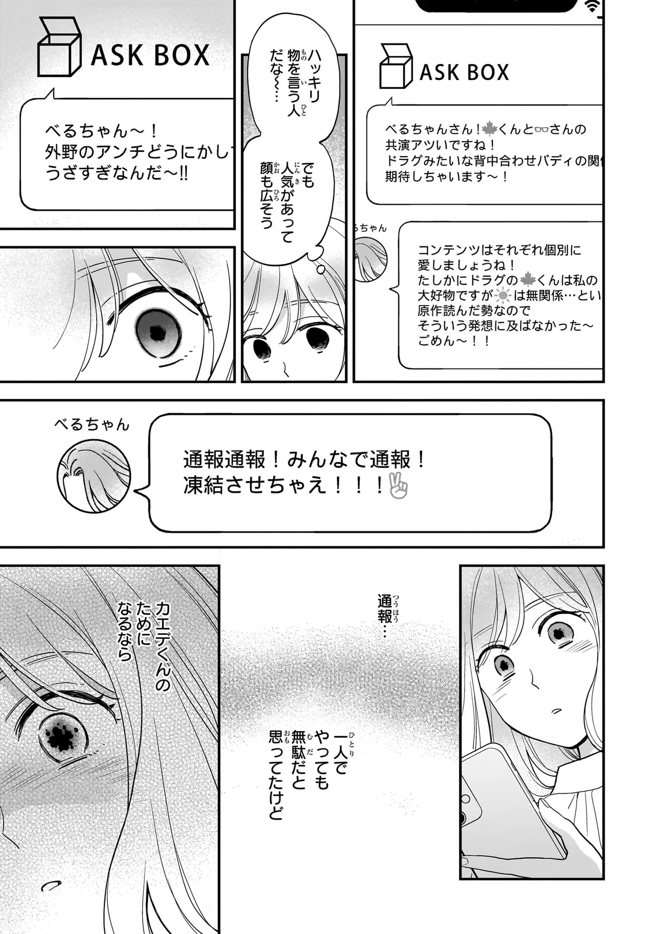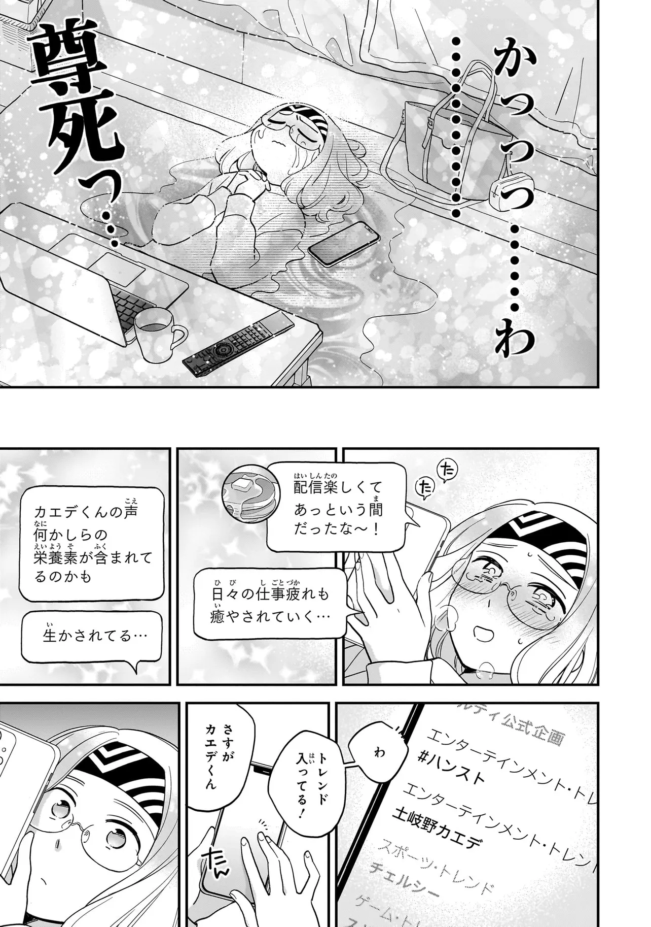 いたって普通の会社員・美花(26歳)の生き甲斐は若手イケメン声優の土岐野カエデを応援すること。チケット買って、グッズ買って、配信観て、アニメ観て、ただただ好きで、ただただ推していたかった。ただそれだけだった。しかし、SNS上ではじわじわとカエデに「害悪オタ」が群がりはじめる。美花は決心する、「カエデくんは、私が守る」!