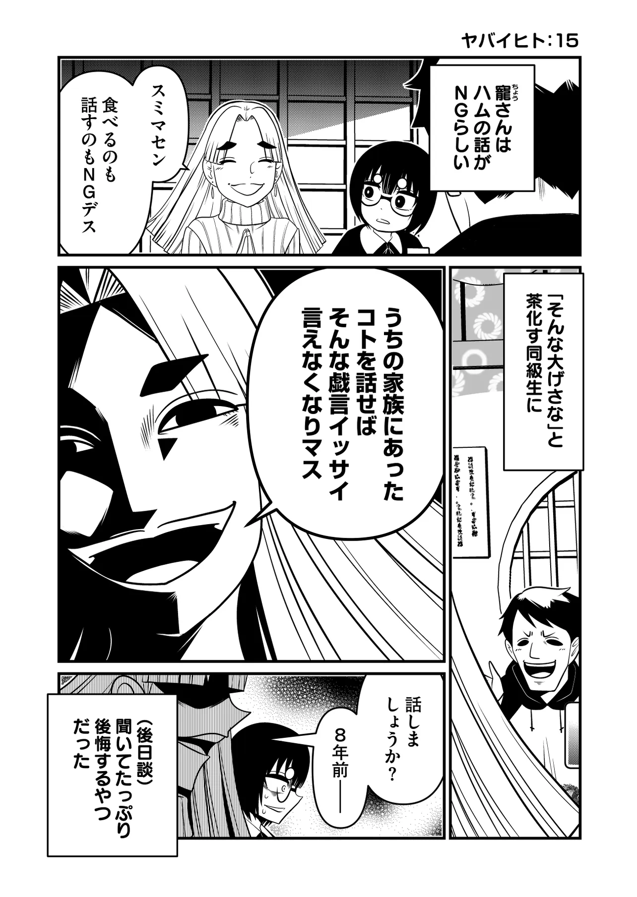 ヤバイヒトR 第4話 ヤバイヒトR 投稿者 admin - 4か月 前に 幸せな読書漫画 ヤバイヒトR 第4話 , いいねと共有ボタンをクリックすることを忘れないでください. Manga ヤバイヒトR 常に更新されます 無料コミック Comic Top. 他のマンガの更新を読むことを忘れないでください。 マンガコレクションのリスト 無料コミック Comic Top マンガリストメニューにあります. お友達と共有しましょう! Facebook Twitter Pinterest Whatsapp 前のエピソード すべての章 次のエピソード リスト ページング Loading.. 前のエピソード すべての章 次のエピソード リスト ページング お友達と共有しましょう! Facebook Twitter Pinterest Whatsapp お気に入りに追加に続く 0 人 ヤバイヒトR …これは、私が遭遇した「ヤバイヒト」と、そいつの元にリターンし、リベンジし、リバースする物語! 奇行・凶行・破廉恥行──街であなたも目撃したことがあろう、「ヤバイヒト」たち。 主人公・誘まねき(さそい まねき)は、幼少期よりそんな「ヤバいヒト」をどんどん寄せ付けてしまうという超・災難体質の少女… しかし、そんなまねきの別人格、向クダキ(むかい くだき)は、まねきが招いた中でも特に「ヤバイヒト」を、過激にヤバく討伐していく!! 洋介犬 ざまぁショートスカッとするダークドラマ変態女主人公女子大生性癖怪異現代異能力社会裏社会・アングラ記憶喪失