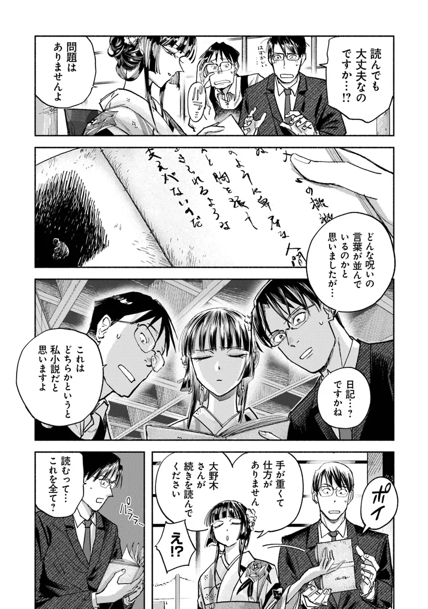県庁生安課で働く大野木は、 突然の辞令で「特別対策室」への部署移動を命じられる。 特別対策室は、怪異としか説明のつかない事件や事故… 世間には公表できない訳ありの案件を解決するための部署だった。 わけもわからないまま、手当たり次第に情報を集めていた大野木は、 奇妙な骨董店の噂話を耳にして――?