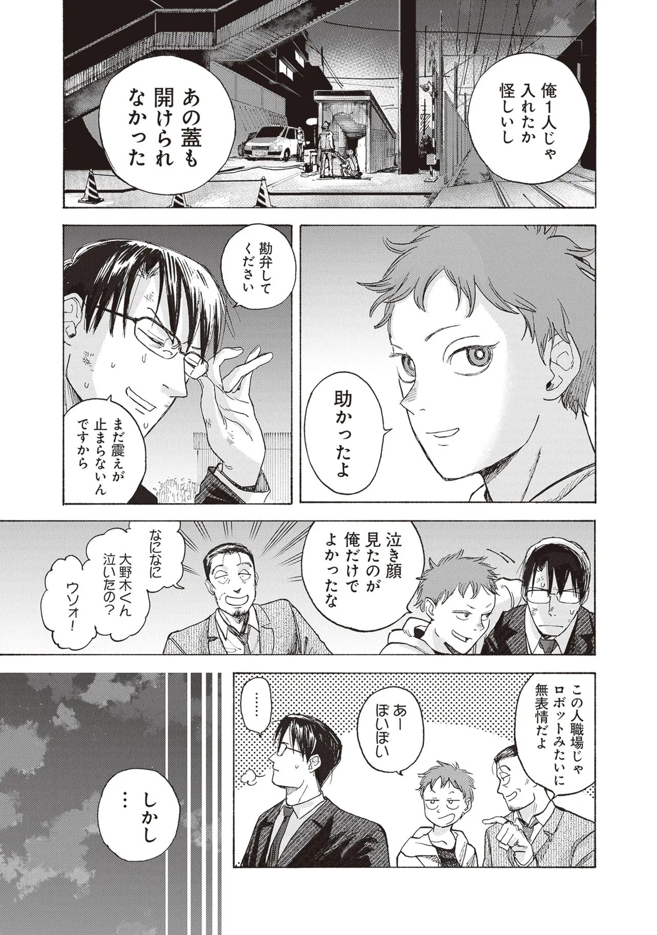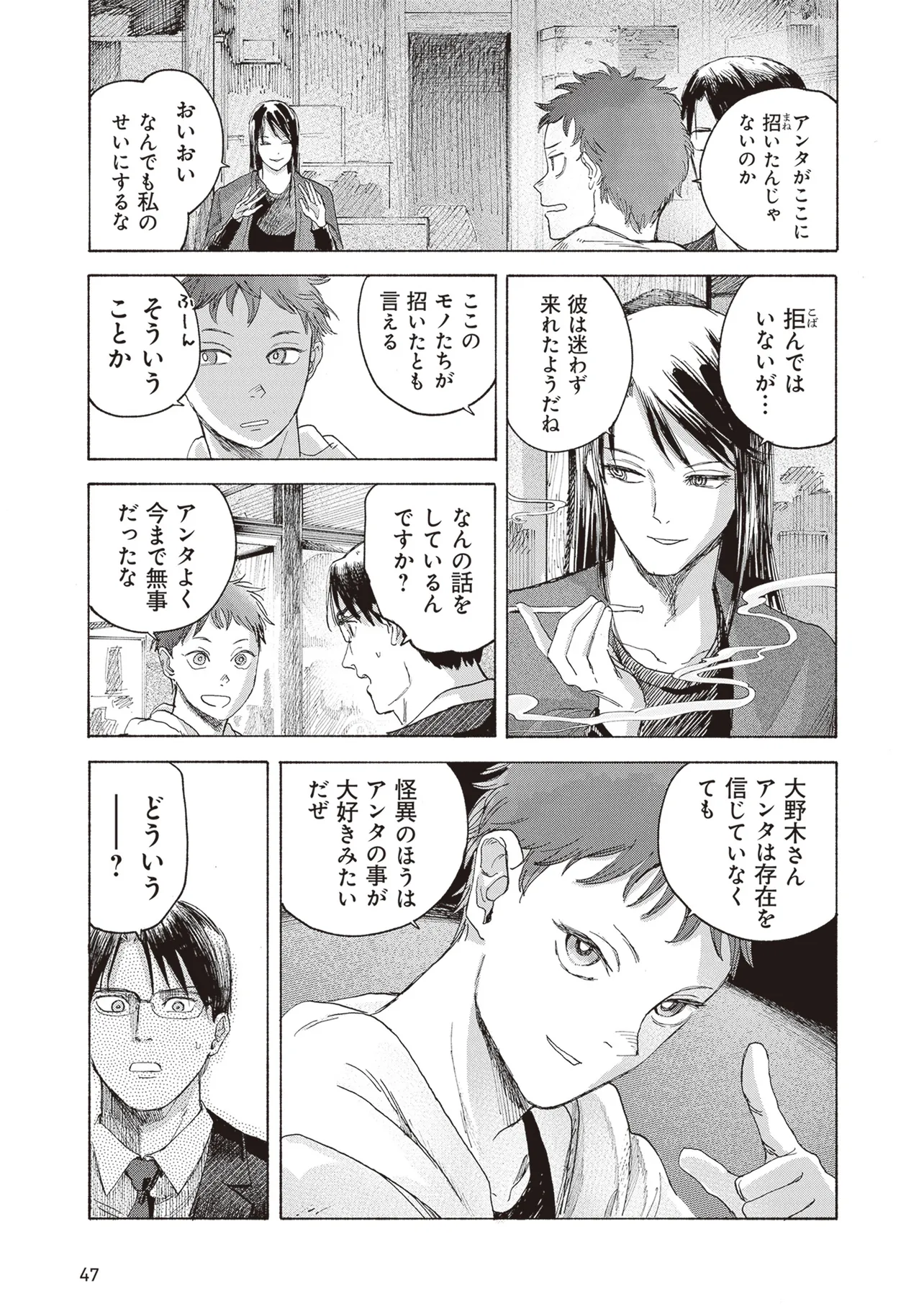 夜行堂奇譚 第二話 大野木龍臣と桜千早(後編) 夜行堂奇譚 投稿者 admin - 10か月 前に 幸せな読書漫画 夜行堂奇譚 第二話 大野木龍臣と桜千早(後編) , いいねと共有ボタンをクリックすることを忘れないでください. Manga 夜行堂奇譚 常に更新されます 無料コミック Comic Top. 他のマンガの更新を読むことを忘れないでください。 マンガコレクションのリスト 無料コミック Comic Top マンガリストメニューにあります. お友達と共有しましょう! Facebook Twitter Pinterest Whatsapp 前のエピソード すべての章 次のエピソード リスト ページング Loading.. 前のエピソード すべての章 次のエピソード リスト ページング お友達と共有しましょう! Facebook Twitter Pinterest Whatsapp お気に入りに追加に続く 0 人 夜行堂奇譚 県庁生安課で働く大野木は、 突然の辞令で「特別対策室」への部署移動を命じられる。 特別対策室は、怪異としか説明のつかない事件や事故… 世間には公表できない訳ありの案件を解決するための部署だった。 わけもわからないまま、手当たり次第に情報を集めていた大野木は、 奇妙な骨董店の噂話を耳にして――? 嗣人(原作)立藤灯(著者) オカルトコミカライズサスペンスホラー妖怪心霊怪異