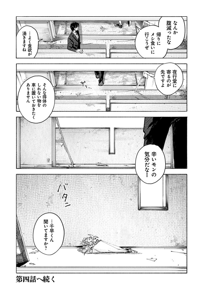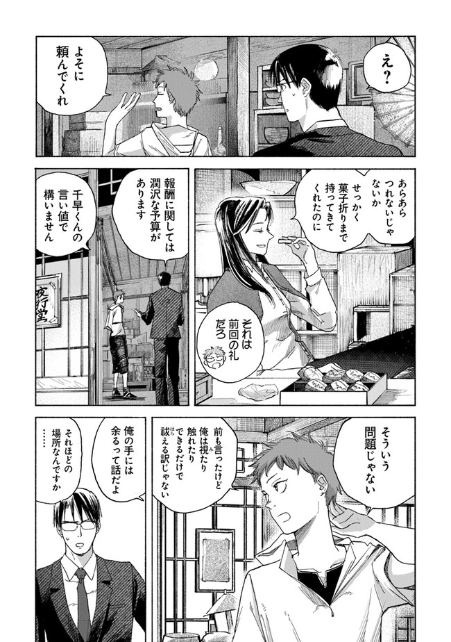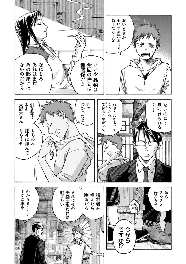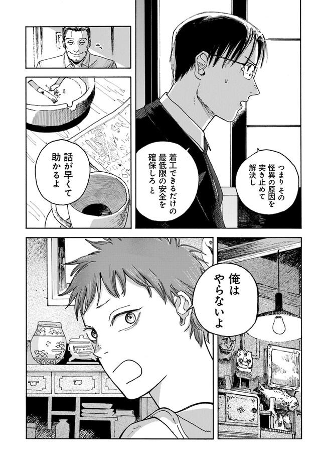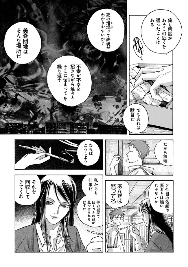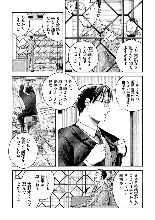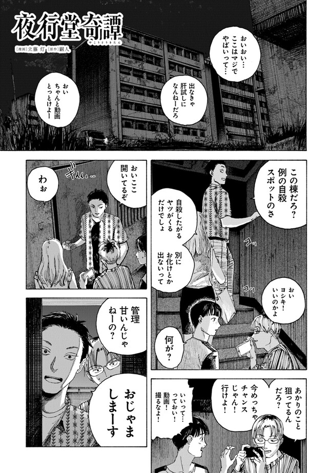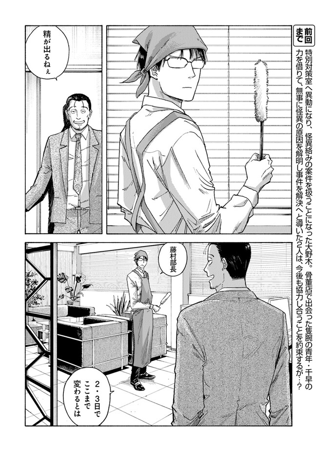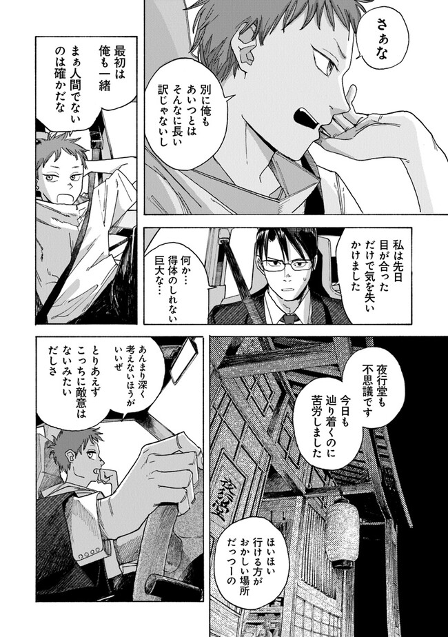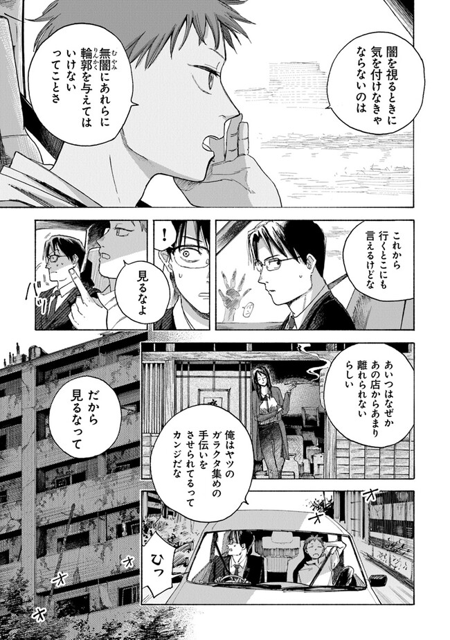 夜行堂奇譚 第三話 夜行堂奇譚 投稿者 admin - 2年 前に 幸せな読書漫画 夜行堂奇譚 第三話 , いいねと共有ボタンをクリックすることを忘れないでください. Manga 夜行堂奇譚 常に更新されます 無料コミック Comic Top. 他のマンガの更新を読むことを忘れないでください。 マンガコレクションのリスト 無料コミック Comic Top マンガリストメニューにあります. お友達と共有しましょう! Facebook Twitter Pinterest Whatsapp 前のエピソード すべての章 次のエピソード リスト ページング Loading.. 前のエピソード すべての章 次のエピソード リスト ページング お友達と共有しましょう! Facebook Twitter Pinterest Whatsapp お気に入りに追加に続く 0 人 夜行堂奇譚 県庁生安課で働く大野木は、 突然の辞令で「特別対策室」への部署移動を命じられる。 特別対策室は、怪異としか説明のつかない事件や事故… 世間には公表できない訳ありの案件を解決するための部署だった。 わけもわからないまま、手当たり次第に情報を集めていた大野木は、 奇妙な骨董店の噂話を耳にして――? 嗣人(原作)立藤灯(著者) オカルトコミカライズサスペンスホラー妖怪心霊怪異