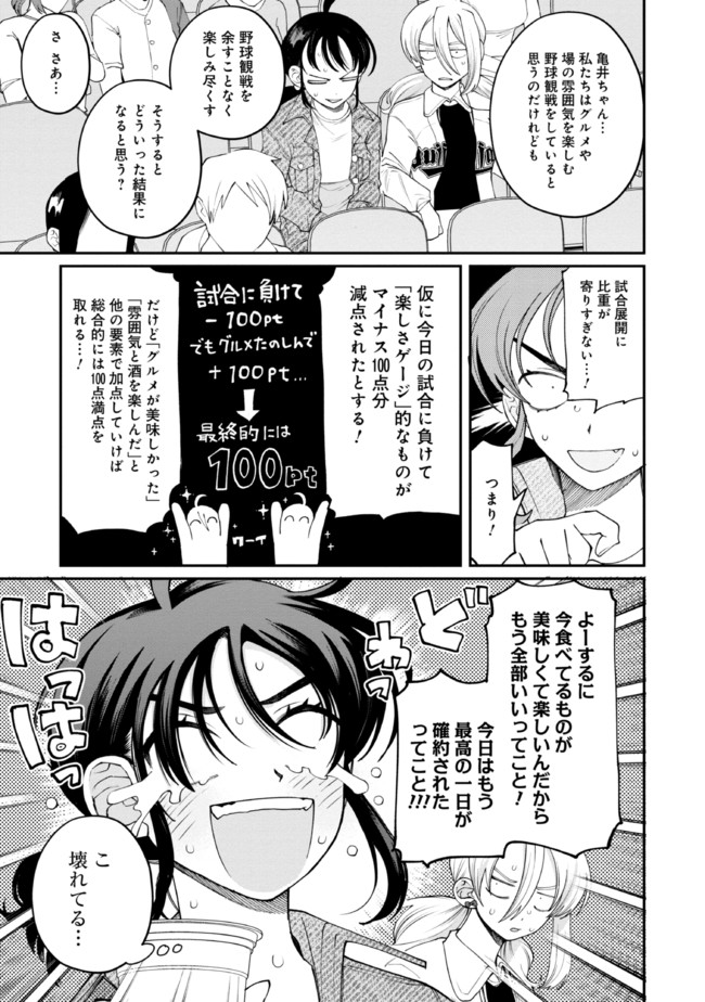坂本つばめ、25歳独身。彼女の日々の社会へのストレス発散方法は、野球場で飯と酒を貪ること! 球場によって違う多様なご飯、値段は高いけど勝てば何よりも美味いビール…非日常で味わう最高の球場飯を 野球観戦初心者の亀井と一緒に食べ尽くす!