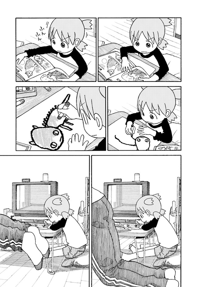 ちょっと変わった5歳の女の子「よつば」と、とーちゃんのふたり暮らしを中心に、まわりの人たちとの何気ない日常を描いた作品。だいたい1日1話のペースで、物語はゆっくりと進みます。