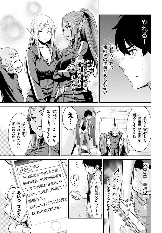 異世界から、ようこそ! いらっしゃいませ♪ 世界初「異世界交流」成功の鍵は、 ちょぴっとオタクな大学生! 僅か四畳半のボロアパートで巻き起こる、 異世界人(ルビ:未知)との遭遇! 究極の、お・も・て・な・し――!? ピンチをチャンスに! 機転を利かせ、相手の要望に応えよ!