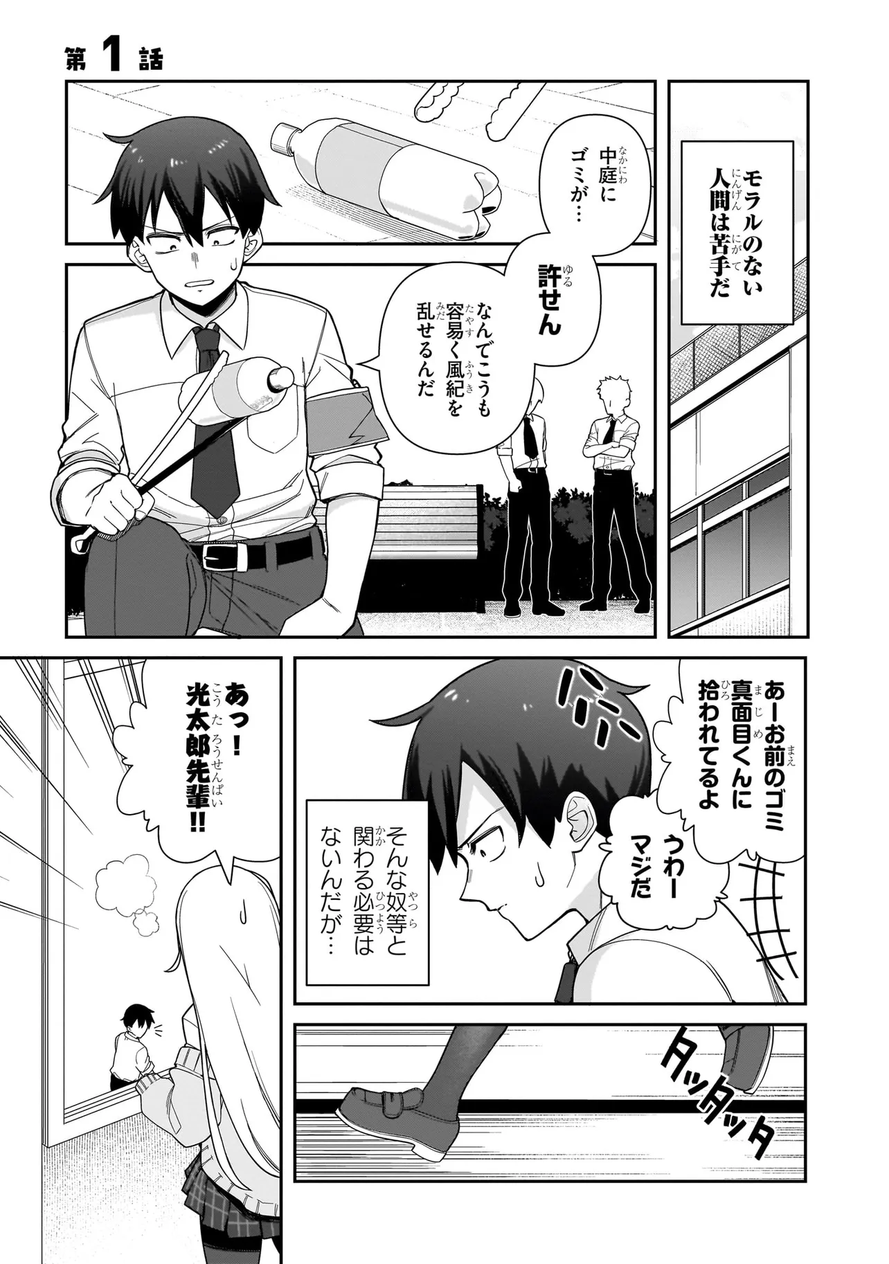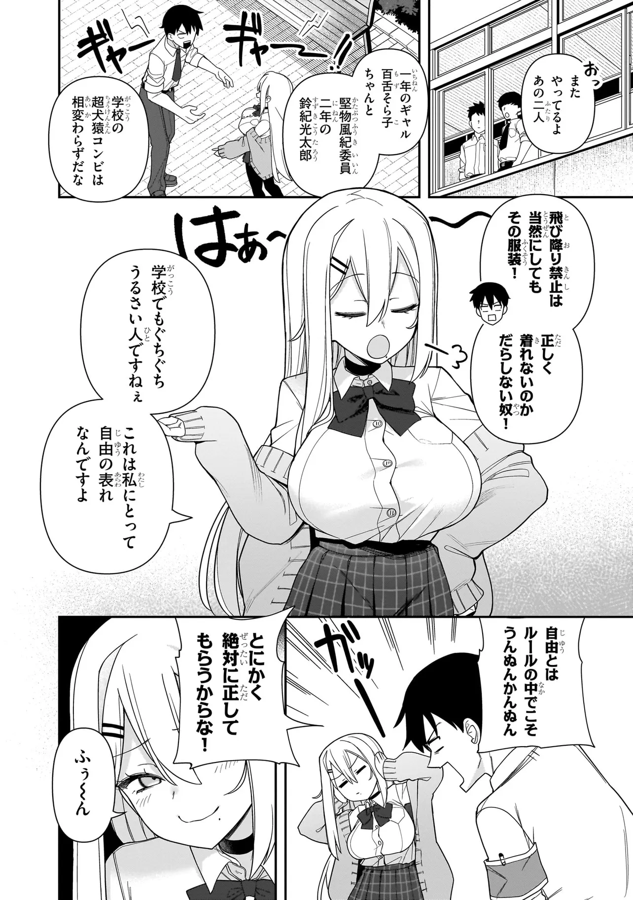 クソ真面目で融通が利かない男子高校生・鈴紀光太郎は生意気な後輩ギャル・百舌そら子と犬猿の仲。いつも百舌がからかわれ、それに激怒する日々を過ごしていた。