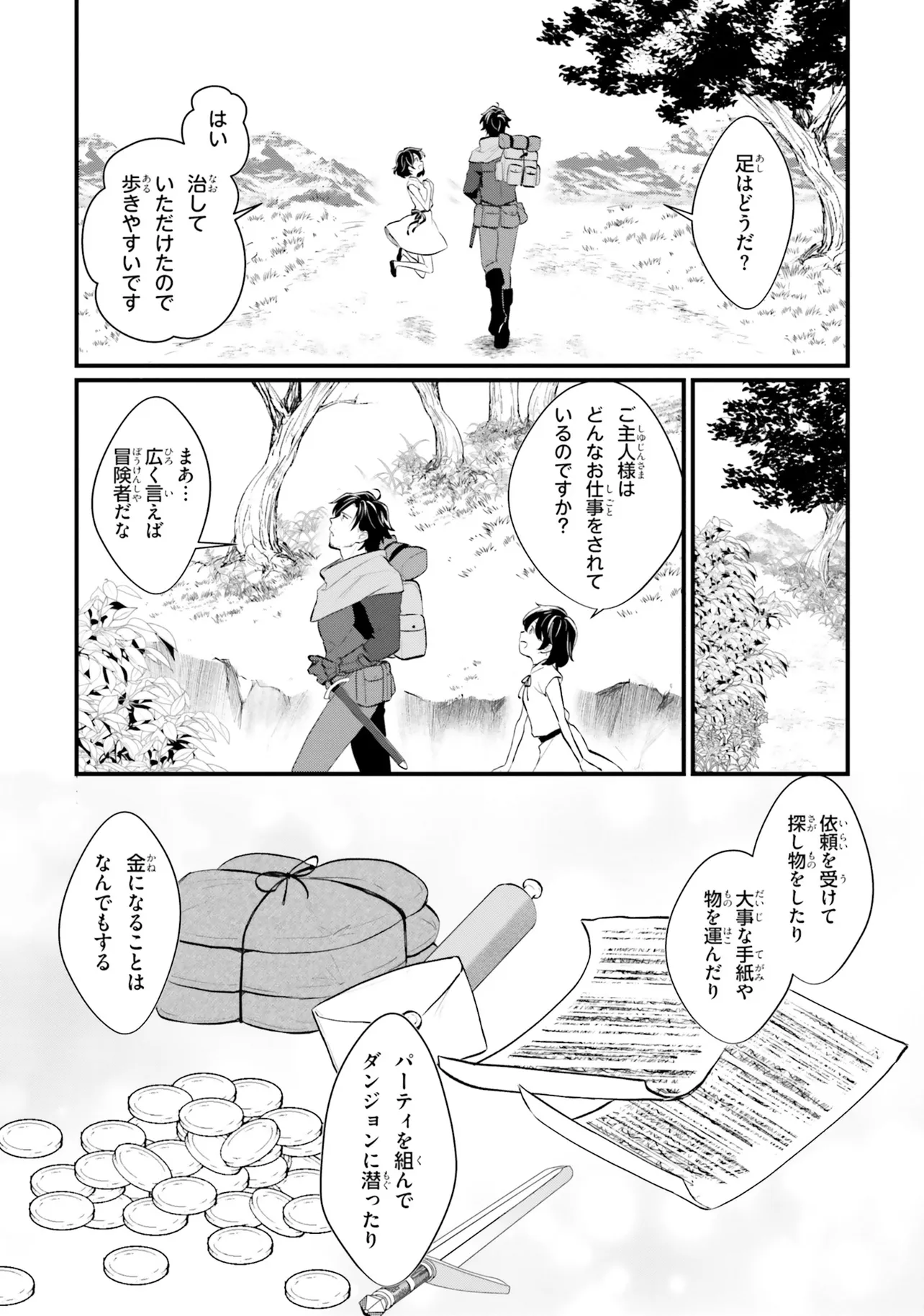 外聞の悪さから疎んじられることの多い盗賊・斥候職を務める、冒険者のハリス。 孤立して酒浸りの生活を送る彼は、ある日酔った勢いで奴隷の少女ティアナを買ってしまう。 それまで酷い扱いを受けていたティアナは、自身を優しく扱ってくれるハリスをご主人様として慕うようになりーー。 これは、二日酔いから始まる、盗賊と少女の「再生」の物語。