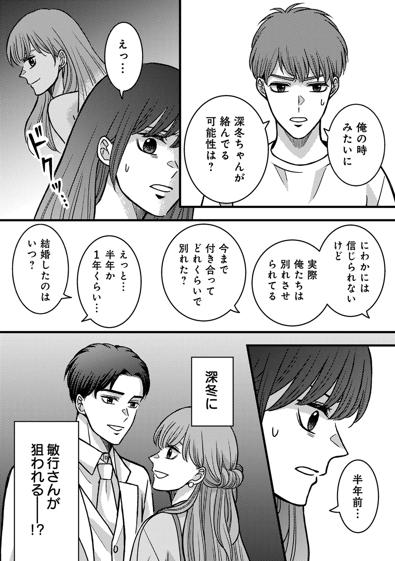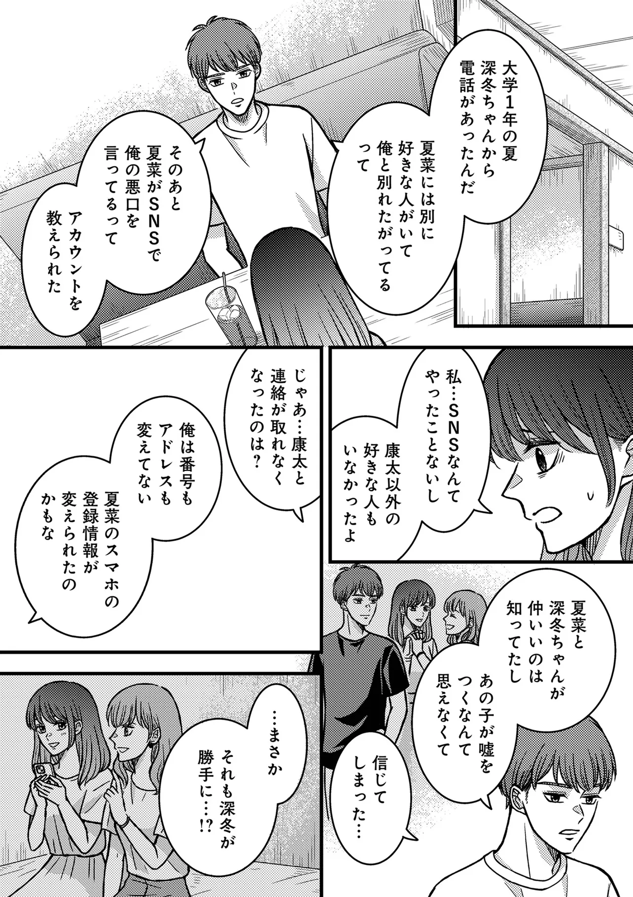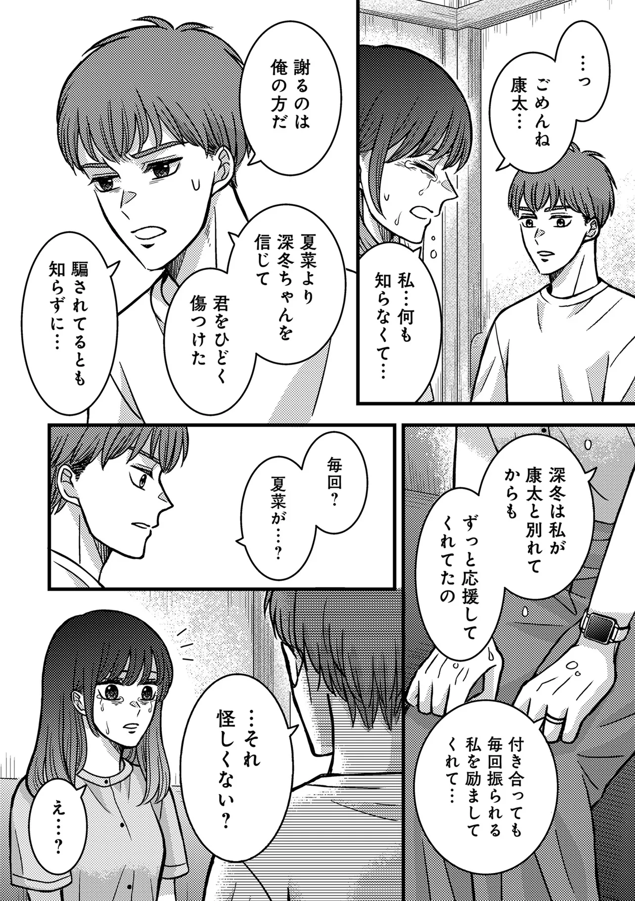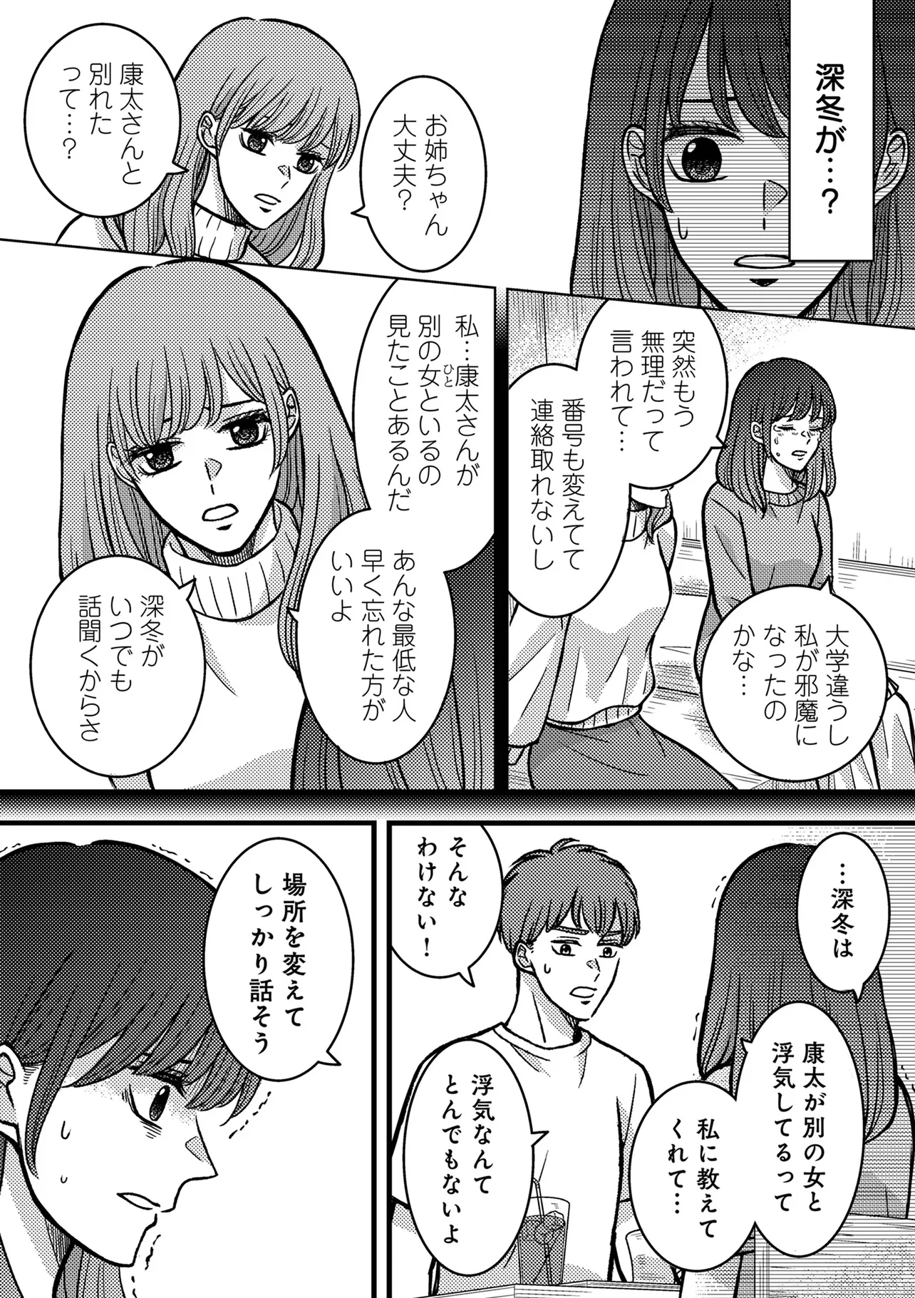 夏菜は偶然再会した元彼の康太と2人で、夫と妹の浮気調査を進めることにしたが――。