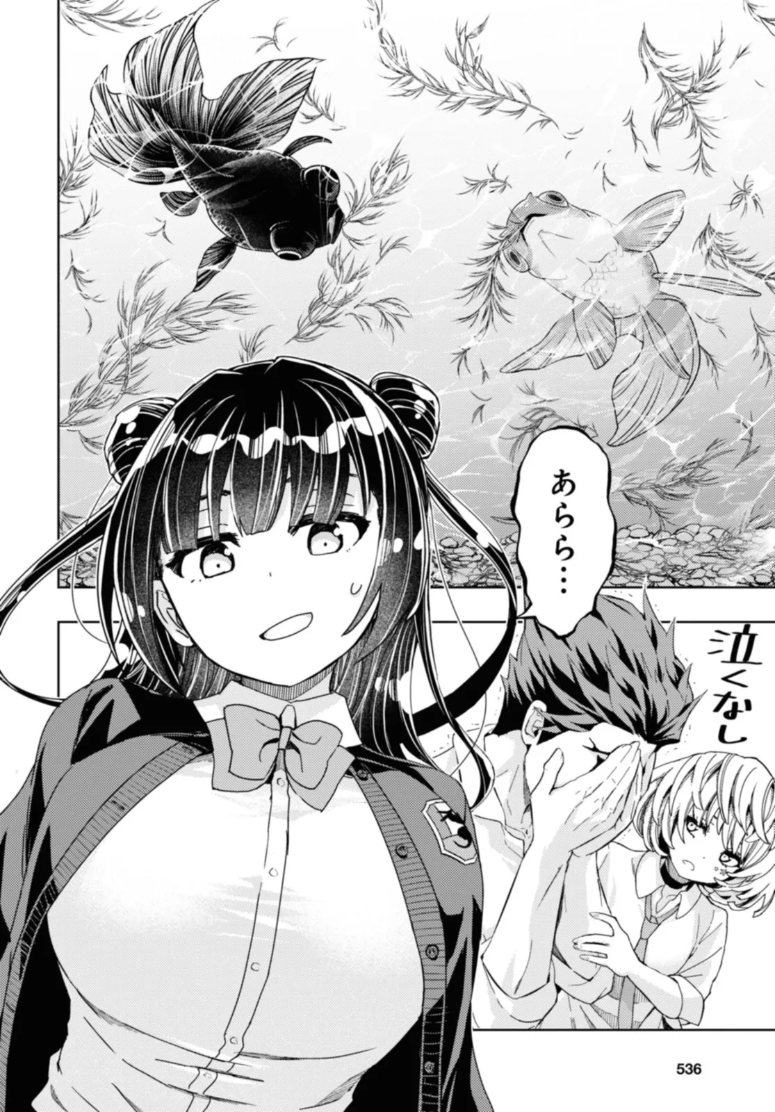 水面に浮かぶは恋模様――。 「武装少女マキャヴェリズム」の最強コンビ・黒神遊夜×神崎かるなが織りなす新鮮アクアリウムラブコメディ! 見た目は派手だが根は優しいテツオは、訪れた祭りでゴミ箱に捨てられた金魚を拾う。川に逃がそうとしたその時、一人の少女に出会い――!?