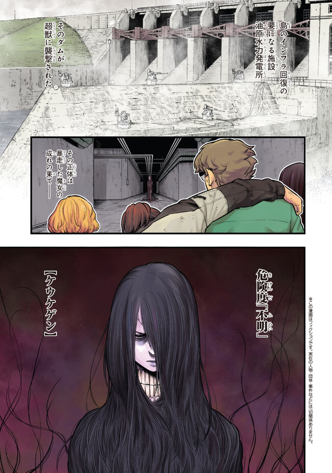 日常を脅かす“奴ら”を、我々【区役所】は「有害超獣」と名付けた――。 数日間、霧が晴れずにいた。その日の午後、霧が一段と深くなった時だった。“それ”は突如、山があったはずの部分から起き上がってきた。もはや山の面影すらなく5つの頭部を持つ巨大な獣がそこにいた……。太平洋上に存在する吉備津島。“それ”の出現を機に、次々と発生するようになった“奴ら”――超獣を制するため、人々は遂に立ち上がる。彼らの組織は【区役所】と呼ばれ、対超獣の最前線として日々戦い続けていた。全ては、人の営みを守るために。超獣たちに、支配されないために。 イラストレーターのToy(e)による、日常のなかで突如現れるクリーチャーの姿を描いたTwitterの人気シリーズがまさかのコミカライズ!