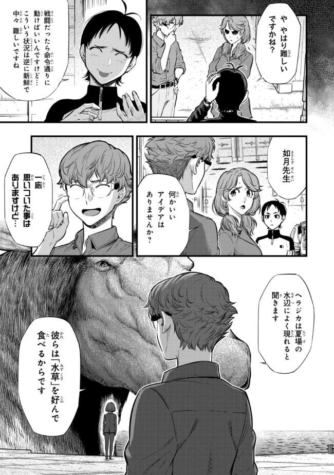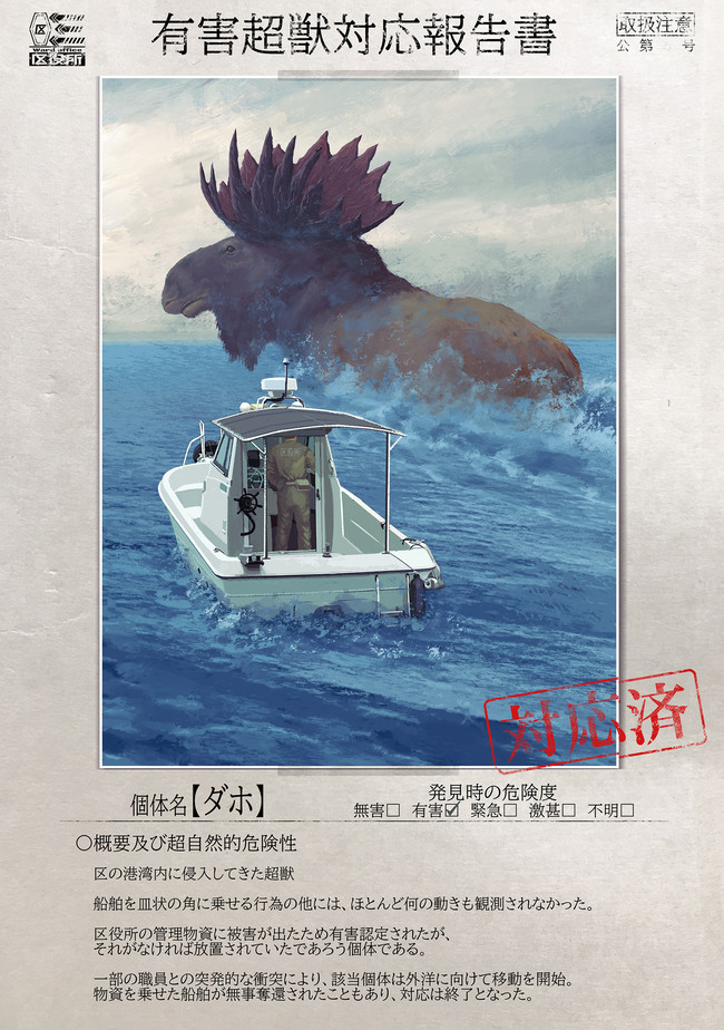日常を脅かす“奴ら”を、我々【区役所】は「有害超獣」と名付けた――。 数日間、霧が晴れずにいた。その日の午後、霧が一段と深くなった時だった。“それ”は突如、山があったはずの部分から起き上がってきた。もはや山の面影すらなく5つの頭部を持つ巨大な獣がそこにいた……。太平洋上に存在する吉備津島。“それ”の出現を機に、次々と発生するようになった“奴ら”――超獣を制するため、人々は遂に立ち上がる。彼らの組織は【区役所】と呼ばれ、対超獣の最前線として日々戦い続けていた。全ては、人の営みを守るために。超獣たちに、支配されないために。 イラストレーターのToy(e)による、日常のなかで突如現れるクリーチャーの姿を描いたTwitterの人気シリーズがまさかのコミカライズ!