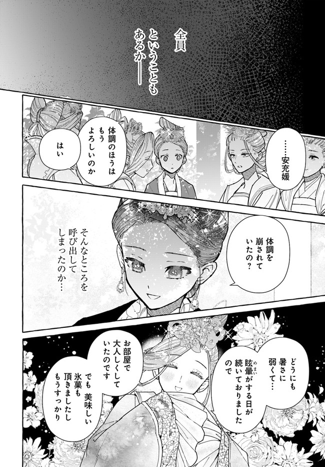 雪花妃伝 ~藍帝後宮始末記~ 第6話② 雪花妃伝 ~藍帝後宮始末記~ 投稿者 admin - 3年 前に 幸せな読書漫画 雪花妃伝 ~藍帝後宮始末記~ 第6話② , いいねと共有ボタンをクリックすることを忘れないでください. Manga 雪花妃伝 ~藍帝後宮始末記~ 常に更新されます 無料コミック Comic Top. 他のマンガの更新を読むことを忘れないでください。 マンガコレクションのリスト 無料コミック Comic Top マンガリストメニューにあります. お友達と共有しましょう! Facebook Twitter Pinterest Whatsapp 前のエピソード すべての章 次のエピソード リスト ページング Loading.. 前のエピソード すべての章 次のエピソード リスト ページング お友達と共有しましょう! Facebook Twitter Pinterest Whatsapp お気に入りに追加に続く 6 人 雪花妃伝 ~藍帝後宮始末記~ 「この娘はいずれ王を害する」…託宣を受け、静かな廟で生涯を終える筈だった鈴雪。しかし、幼い彼女の運命は流転する。王の手で強引に都へ連れ去られ――名ばかりの王后とされたのだ。時が経ち、離宮で美しく知性ある女性となった鈴雪が投げ込まれたそこは、陰謀渦巻く世界だった……。 伊東七つ生(キャラ原案)瀬田一乃(著者)都月きく音(原作) COMIC BRIDGEforgirlsコミカライズサスペンスファンタジー中華後宮仕事夢見る少女じゃいられない大人向け女性向け富士見L文庫恋愛