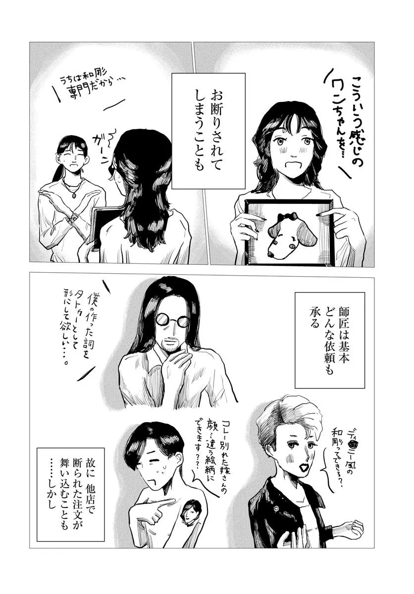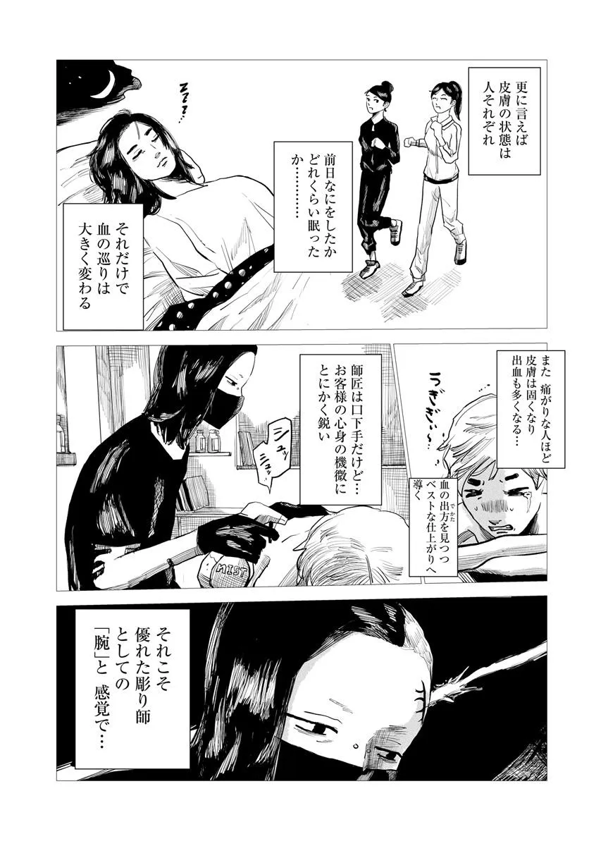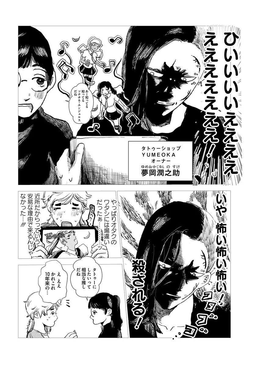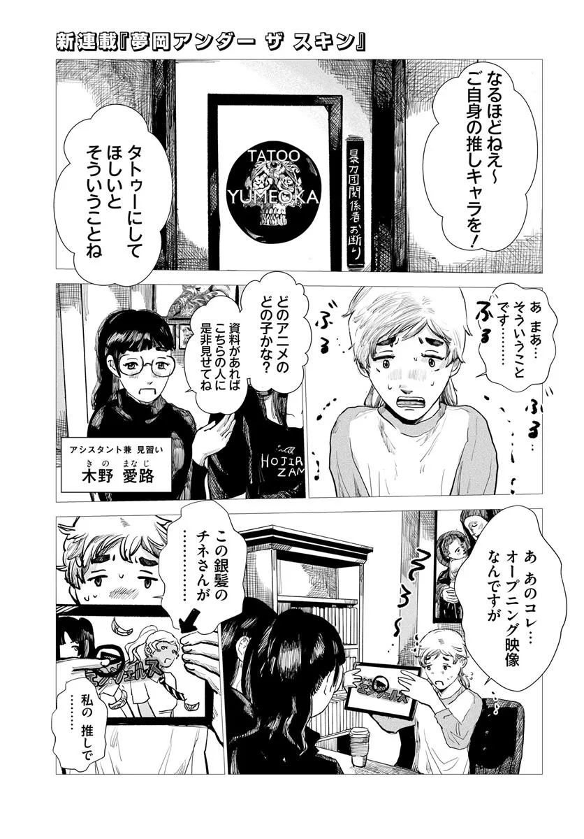 ネットにて雰囲気・接客・仕上がり、オール最高評価のタトゥースタジオ「studio ユメオカ」。 腕はピカイチで、オールジャンルの作品を仕上げるオーナー「夢岡潤之助(ゆめおかじゅんのすけ)」。 だがしかし、初めてのお客さんは動揺する、その超強面で…そして超センチメンタルなギャップに!! お客さんの身に、 一生消えないアートを刻む“彫師”を取り上げたお仕事漫画。