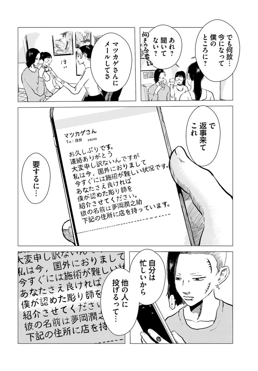 “夢岡アンダー ザ スキン” 第6話-1 夢岡アンダー ザ スキン 投稿者 admin - 9か月 前に 幸せな読書漫画 “夢岡アンダー ザ スキン” 第6話-1 , いいねと共有ボタンをクリックすることを忘れないでください. Manga 夢岡アンダー ザ スキン 常に更新されます 無料コミック Comic Top. 他のマンガの更新を読むことを忘れないでください。 マンガコレクションのリスト 無料コミック Comic Top マンガリストメニューにあります. お友達と共有しましょう! Facebook Twitter Pinterest Whatsapp 前のエピソード すべての章 次のエピソード リスト ページング Loading.. 前のエピソード すべての章 次のエピソード リスト ページング お友達と共有しましょう! Facebook Twitter Pinterest Whatsapp お気に入りに追加に続く 0 人 夢岡アンダー ザ スキン ネットにて雰囲気・接客・仕上がり、オール最高評価のタトゥースタジオ「studio ユメオカ」。 腕はピカイチで、オールジャンルの作品を仕上げるオーナー「夢岡潤之助(ゆめおかじゅんのすけ)」。 だがしかし、初めてのお客さんは動揺する、その超強面で…そして超センチメンタルなギャップに!! お客さんの身に、 一生消えないアートを刻む“彫師”を取り上げたお仕事漫画。 悠岡清人 アツいシリアスドラマ大人向け現代笑える考えさせられる裏社会・アングラ