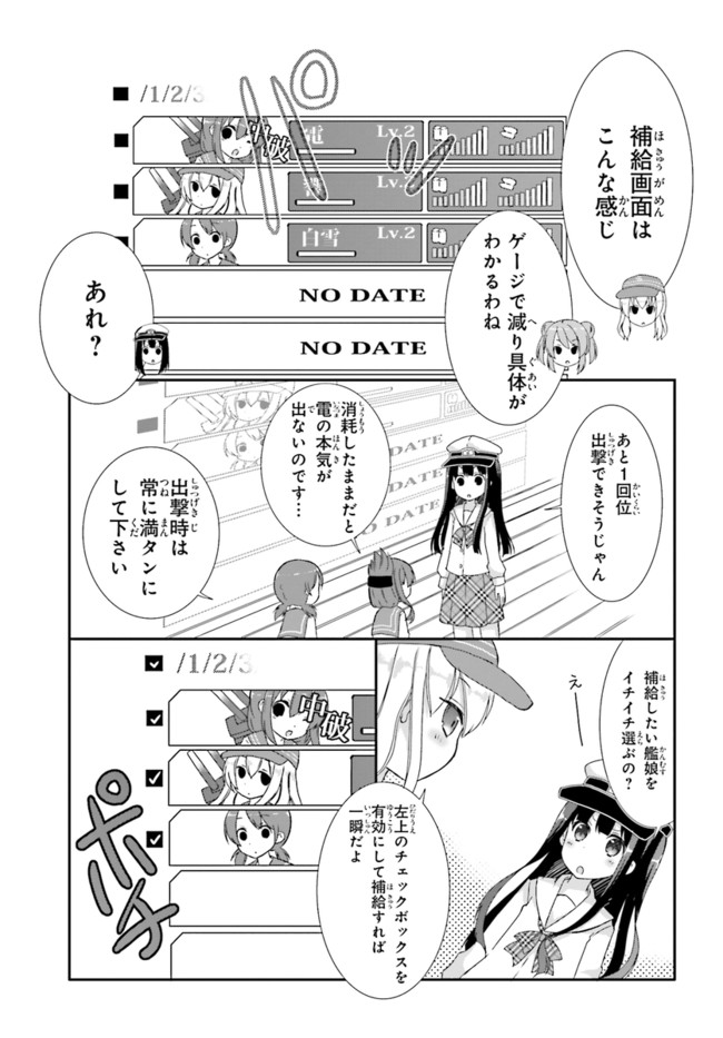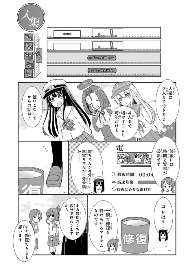 艦これを始めたばかりの新人女提督が右往左往。間違いだらけの提督をサポートしてくれるのは電。艦これビギナーに向けてのレクチャーマンガがスタートです。