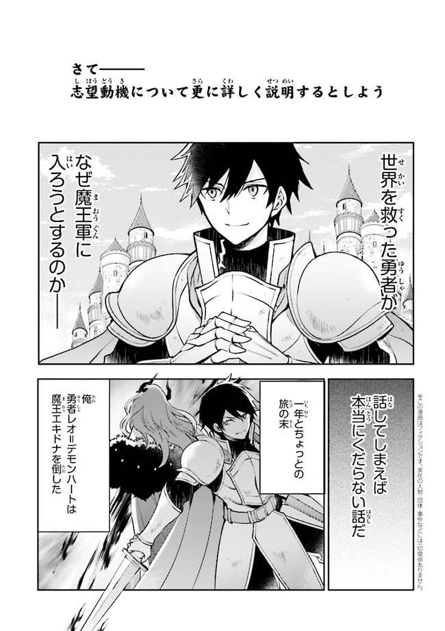 世界を救った後、どこにも行き場がなくなった最強勇者・レオ。強すぎる力は平和な世界にはいらない存在……。そんな彼が行き着いた就職先は――かつての敵、魔王軍だった! 第二回カクヨムコン・異世界ファンタジー大賞受賞作品が完全コミック化!
